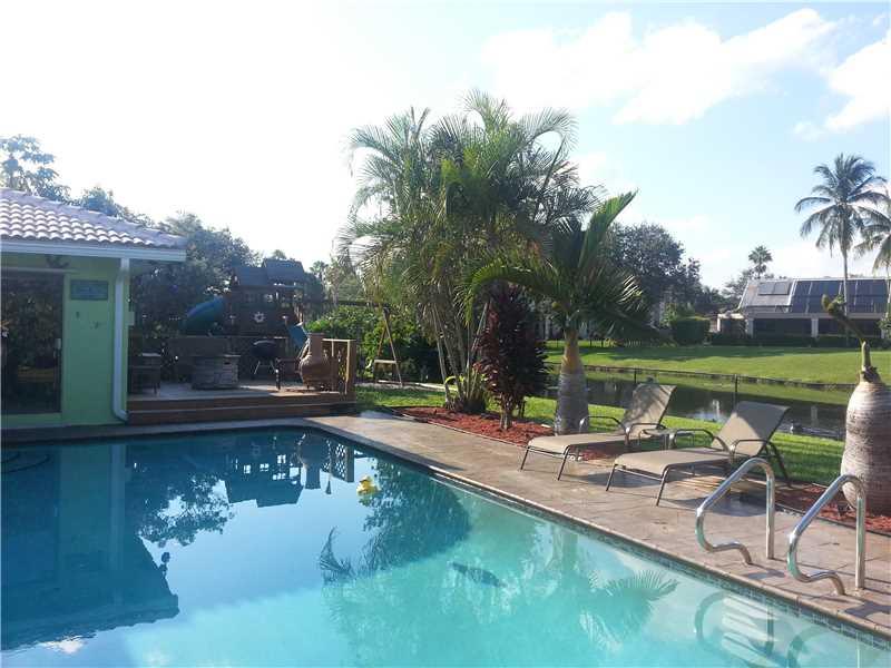 Beautifully maintained pool home located in desirable Maplewood community. This home features remodeled gourmet kitchen w/custom cabinetry, tile backsplash, s/s appliances & pull-out drawers. Open floor plan, remodeled bathrooms w/Jacuzzi tub & new vaniti es. Large bedrooms all offering walk-in closets. Home sits on a large, private, fenced lot w/ serene canal views, wood deck, large covered patio & playground. Hurricane shutters. No HOA. A true must see.