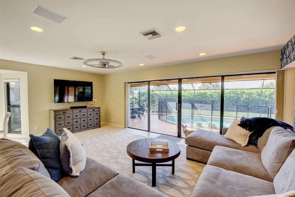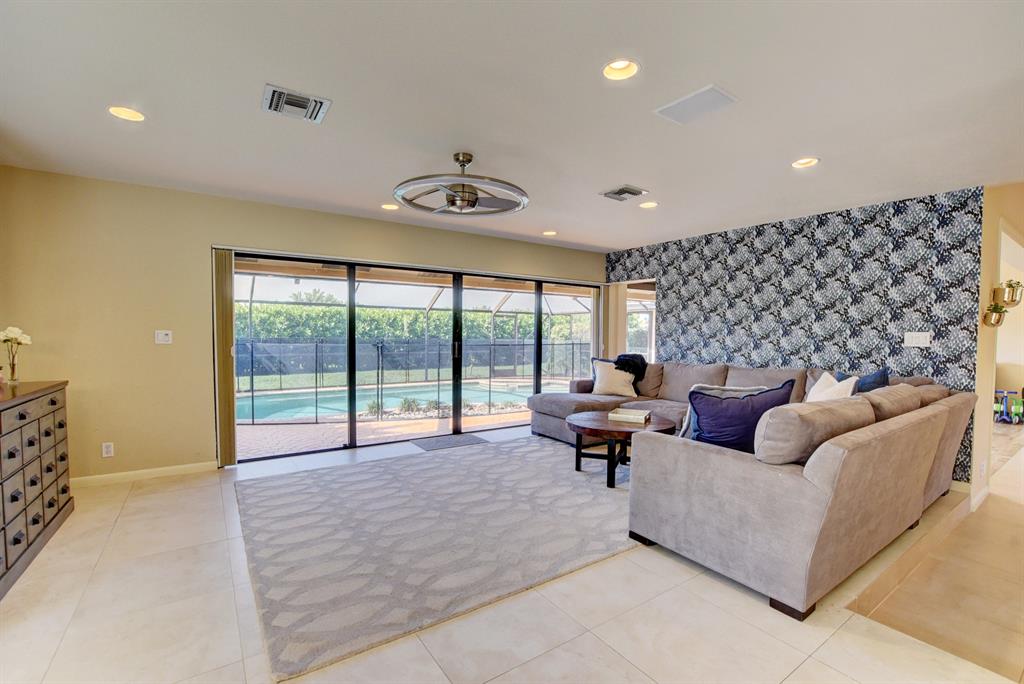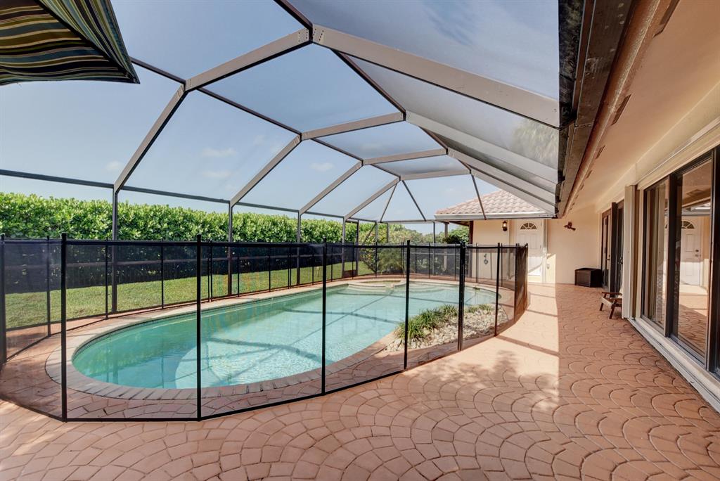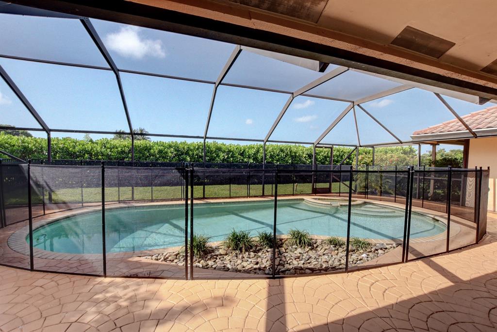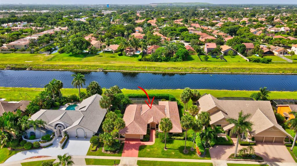Welcome to this stunning hilltop ranch, set in a premium gated golfing community in Boca Raton. Enjoy the open concept floor plan with vaulted ceilings, perfect for family and entertaining. Recent upgrades include: installation of HURRICANE IMPACT WINDOWS/SHUTTERS throughout the home, and new flooring and paint in the bedrooms! Lounge in your private Lanai and pool and enjoy the private greenspace on the Hillsboro canal, perfect for your dog! Membership at Boca Pointe Golf Course and Country Club is available but not required!
