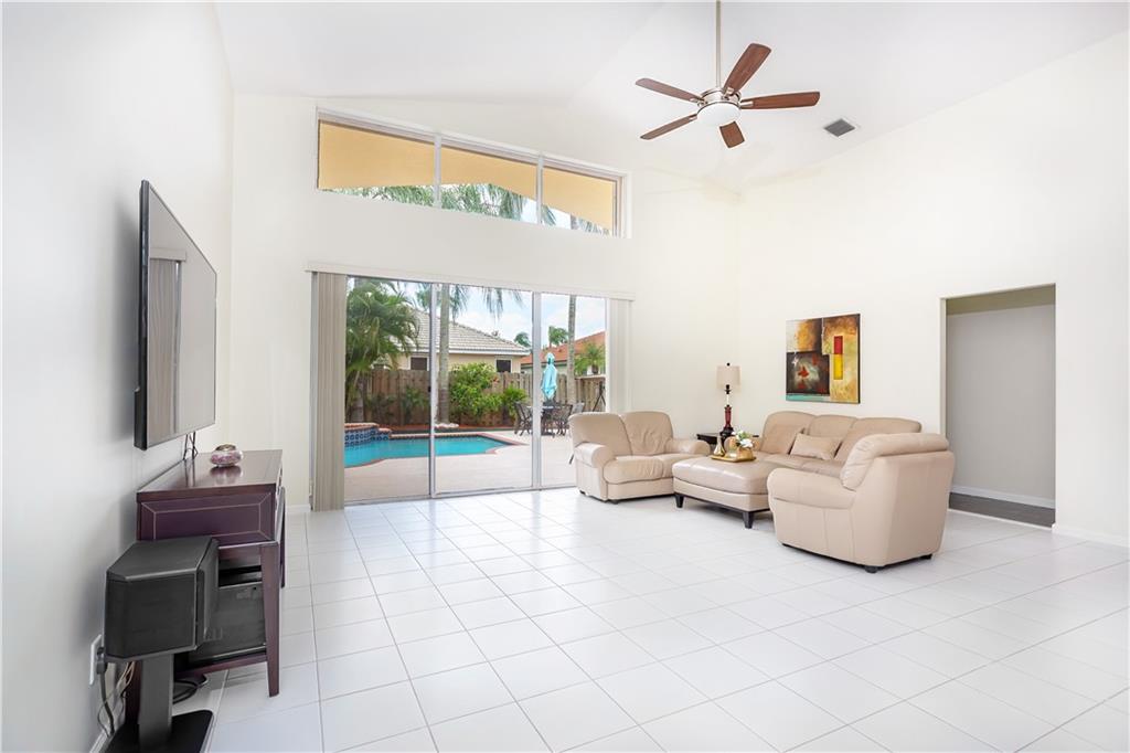 BEAUTIFUL 3/2.5 ONE STORY, WITH AN OVERSIZED POOL IN SILVER LAKES! THIS HOME FEATURES TILE FLOORING IN THE MAIN LIVING AREA AND NEW PORCELAIN TILE IN ALL BEDROOMS. UPGRADED KITCHEN WITH QUARTZ COUNTERTOPS, WOOD CABINETRY AND STAINLESS STEEL APPLIANCES. HALF BATH AND SECOND BATH COMPLETELY UPGRADED WITH QUARTZ COUNTERTOPS, NEW LIGHTING FIXTURES AND NEW TILE. LARGE MASTER WITH A SEPARATE SITTING AREA, PERFECT FOR A HOME OFFICE. FULLY FENCED-IN BACKYARD WITH A POOL & SPA, AND PLENTY OF ROOM TO ENTERTAIN. HOME IS PROTECTED BY ACCORDION SHUTTERS. HOME ALSO FEATURES A WATER SOFTENER & REVERSE OSMOSIS SYSTEM!