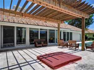 This 3 bedroom and library/media room on a sensational cul-de-sac waterfront and golf course property, has been extensively renovated in transitional contemporary style. Master bedroom with his and hers bathrooms and closets; two additional en-suite bedrooms; dining room and high volume trayed living room with extended poolside sitting area with entertainment bar. New neutral, Travertine marble floors. All new operable window wall in family room, living room, and master bedroom, is hurricane rated. New custom front door and custom mahogany interior doors. All new bathroom cabinetry and fixtures. Complete new wood cabinet kitchen with granite counter tops, dual dishwashers, and new stainless steel appliances including professional gas stove and convecti... (see supplement for full remarks)