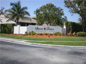 SHOW AND SELL! Lovely 3 bedroom 2 bath 2 car garage home in Boca Trace. *Cathedral ceilings in living area *wood laminate floors in kitchen and breakfast nook * Spacious living room/dining area combo with glass sliders leading to patio. *Low HOA *3rd bedroom off the foyer with double doors-perfect for den *Walk-in closet in master *Screened/roofed patio *Nice size backyard. *Accordian shutters for all openings *Very neat and clean *All-ages *Low HOA *Community Pool *Conveniently located *Hammock Pointe Elementary, Omni Middle and Spanish River High Schools *Property being sold ''AS IS'' for Seller's convenience *EXCLUSIONS: Sheer curtains in living room/dining area and master bedroom drapes.