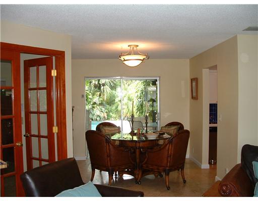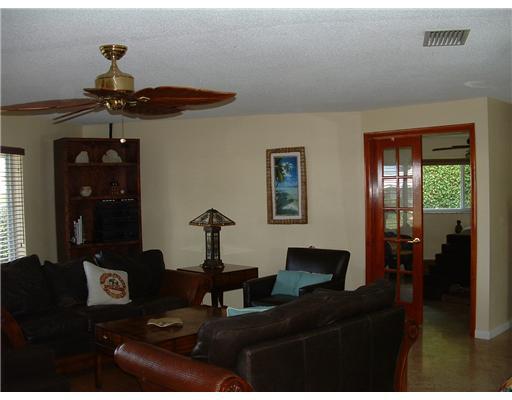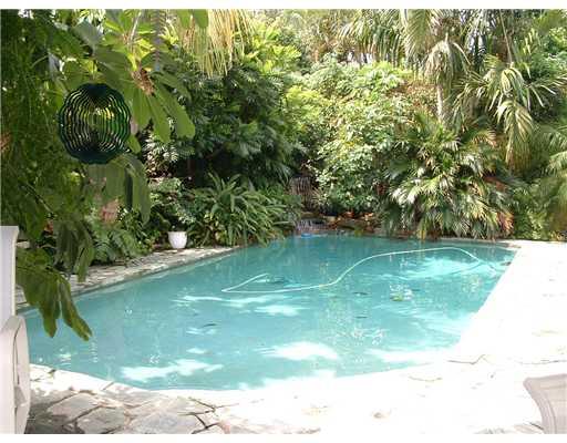 Tastefully updated four bedroom home in prestigious Camino Gardens.Split bedroom plan with Travertine flooring throughout,INCLUDING CLOSETS!Open kitchen with breakfast bar and pass-thru to patio.This very private backyard is a tropical paradise with a spa cious covered patio finished in custom Brazilian slate with iron pyrite highlights,lush tropical landscaping,electric waterfall recirculates pool on a timer!All 4 sliders out to patio pocket, back yard fenced PLUS a dog run!Spacious interior laundry room.