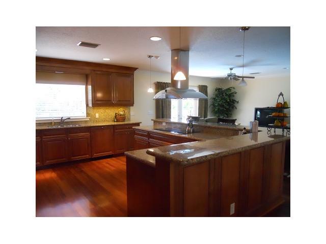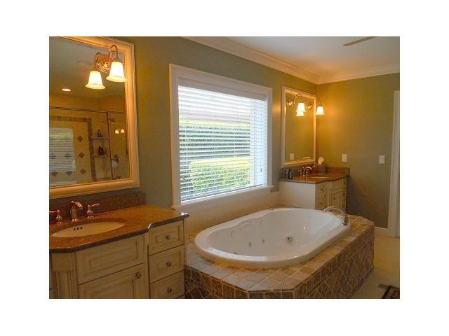 Beautiful waterfront on extra wide canal, completely new in 2003. Flowing floorplan with oversized gourmet kitchen with granite, custom cabinets, upgraded appliances and exotic hardwood floors throughout living areas. Great three-way split floor plan and most rooms enjoy the wonderful water views. The spacious master suite includes a luxurious bath with oversized shower, spa tub and walk in closet. Lovely pool and patio and newer dock. Impact glass, French doors and fenced. Perfect inside and out!