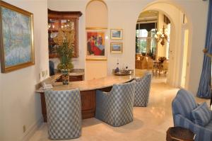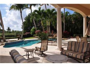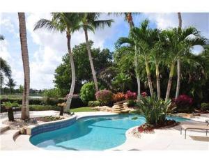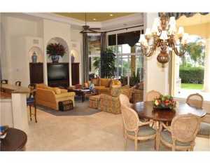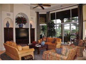 A very special ultra-luxury property--stately and impressive in a tropical resort setting on almost a half acre with lake and golf course vistas. This exquisite 8200 + sf estate offering 6 bedrooms, 7 full & 3 half baths is ideal for gracious living and luxurious entertaining. Interior spaces include a magnificent master bedroom suite with his & her baths, spacious loft, exercise room, state-of-the-art 10 seat theatre, 3-car garage & circular driveway. This majestic residence showcases the finest of finishes with every attention to detail offering volume ceilings with crown moldings; Saturnia marble and hardwood floors; plush carpeting; an elegant floor to ceiling marble fireplace and wet bar with granite counters in the living room. The stunning his and her offices showcase a built-in