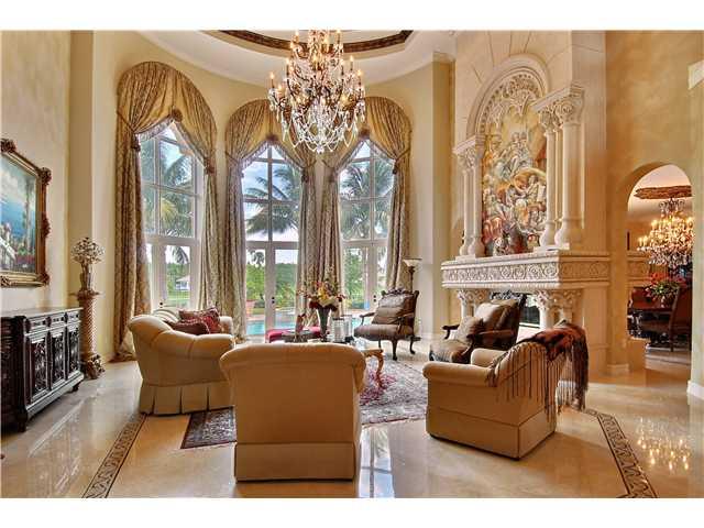 With seven bedrooms and seven and two-half baths, this property is ideal for grand family living or entertaining. The kitchen is a chef's delight, featuring double-size Sub Zero refrigerator and freezer, stainless steel appliances, Thermador gas stove, granite countertops, triple edged granite island an elevator, gas fireplace with stone enhancements, oversized windows with floor to ceiling water views, imported granite columns, intricate mosaic, volume coffered dome ceilings and Brazilian wood floors