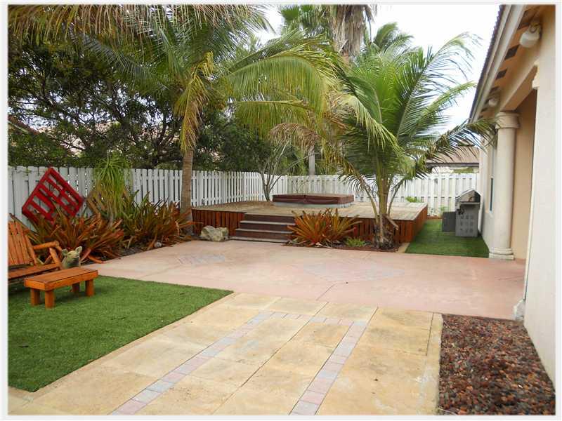 VERY WELL KEPT ONE STORY HOME WITH 5BED, 3BATH & 3CAR GARAGE. COZY BREAKFAST AREA LOCATED NEXT TO THE FAMILY ROOM. CROWN MOLDING IN DINNING ROOM, 3 WAY SPLIT FLOOR PLAN AND CERAMIC FLOORS IN LIVING AREAS AND BEDROOMS. SPACIOUS KITCHEN WITH WOOD FLOORS & G RANITE COUNTERTOP IN CENTER ISLAND. INTERIOR FENCE LOT, COVERED PATIO AND A VERY NICE BACKYARD WITH OVERSIZED JACUZZI WOOD DECK, ROOM FOR A POOL AND EXTENDED PAVED AREA AS WELL. EXCELLENT LOCATION CLOSE TO EVERYTHING AND 24 HRS.GUARD GATED COMMUNITY.