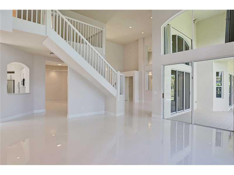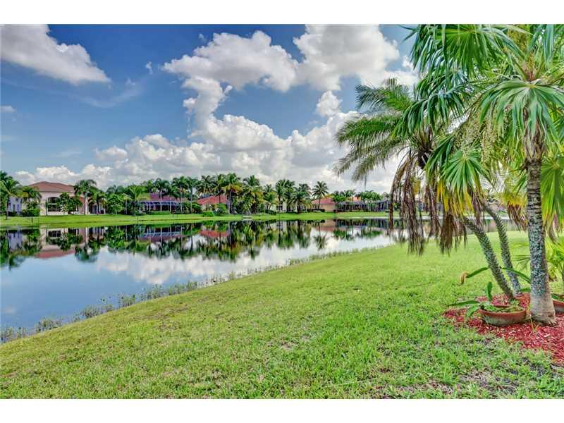 Contemporary Masterpiece located in the Estates of Pembroke Shores. Lushly landscaped point lot surrounded by palm trees and water. 4/4/3 with large office/media room, 24x24 white porcelain tile floors throughout 1st level, with wood floors on the 2nd le vel. Marble Bathrooms with Italian Designer Vanities. Stunning Gourmet Kitchen with Quartz Countertops. High volume ceilings & desirable split bedroom floor plan. Huge master suite with luxurious bath and custom built-ins. Resort style pool with spa.