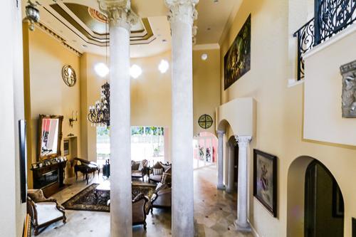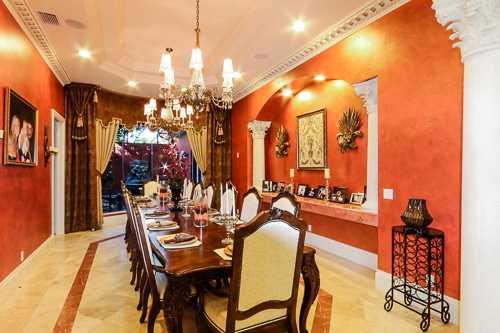 Italian Styled Mediterranean Mansion- 2.8 acre Corner Lot, Custom Exterior with Balustrade Finishes. Ornamental Iron Fence & Auto Gate, Spacious Interior up to 30ft Ceilings, Gourmet Kitchen, Marble Flooring, Marble Fireplaces, Palatial Columns, Movie Th eater/Media Room w/Stadium Seating, Arcade, Indoor Atriums, Maid's Quarters, Outdoor Kitchen, Lg Heated Pool, Stocked Fishing Pond w/Boat Ramp, (7) Car Garage, Xtra Detached Garage House, 40ft Waterfall* Bring Offers*