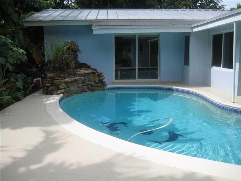 Fully updated pool home surrounded by tropical, mature foliage. New metal roof in '07, new A/C in '10, & all hurricane resistant windows/doors. Five sets of sliding glass doors to rear pool and patio. You'll love to cook in the large, open custom kitch en with long center island, Subzero fridge & 2 ovens. Master bedroom w/custom built-in cabinetry in the large bath & in the oversized walk in closet. 2nd Master bedroom on opposite side of home, 3rd bedroom w/ Murphy bed & built in desk used as office.