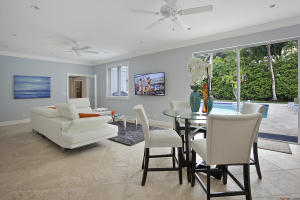 This spectacular Key West style home situated on a desired cul-de-sac in the heart of Northwood Shores off of Flagler Drive. Featuring a 5/3.5 multi story waterfront home with an Eastern exposure of the intra coastal waterway with ocean access and riparian rights. This home boasts a 48 by 38 salt water heated pool with a covered lanai perfect for entertaining along with the surround sound system throughout the home. Two master suites one up and one down. Custom chefs kitchen with gas, Jerusalem Limestone flooring on the lower level of the three level home & solid oak flooring on the upper floors. When pulling up to the home there is a circular Chicago brick driveway leading you to this spectacular waterfront home.