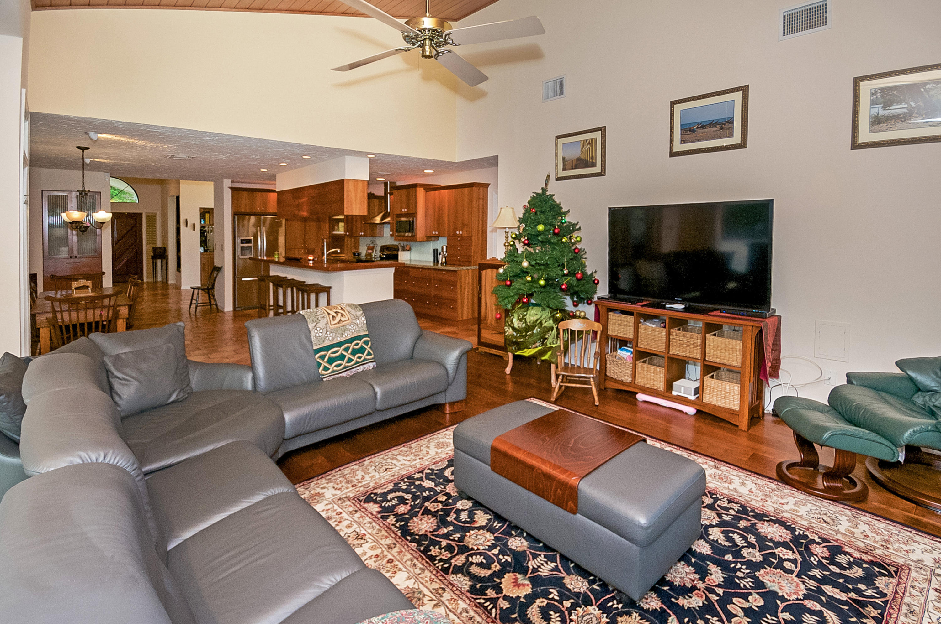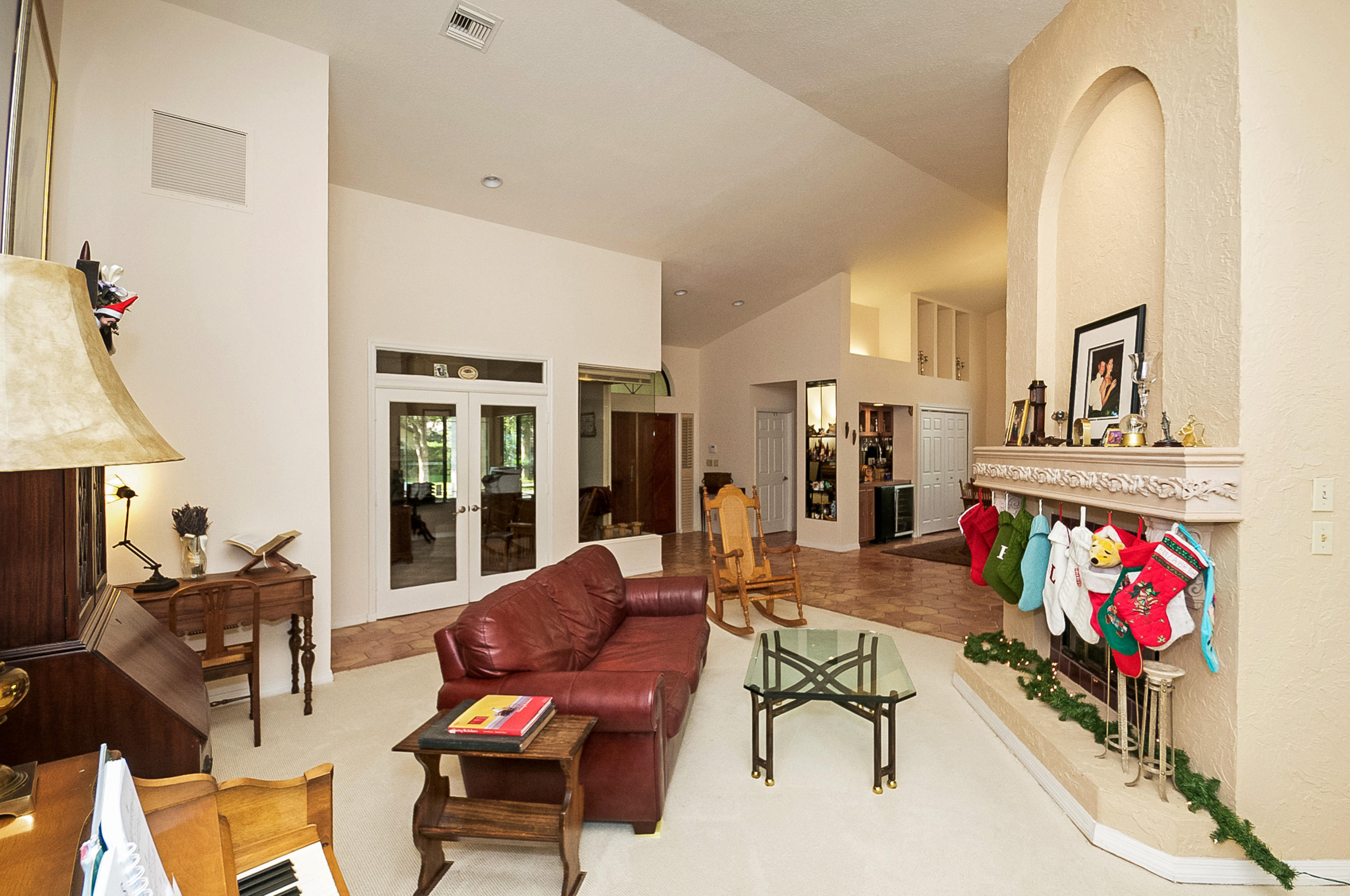 Beautiful eastern exposure lakefront home with 4 bedrooms plus a den, updated kitchen, master bath and secondary bath, vaulted ceilings, impact glass and hurricane shutters, open, bright and airy, easy flow floorplan, tankless water heater, gas for stove, bbq grill, pool heater and 2 fireplaces. Mature trees and landscaping with open pool and patio area! Surround sound with outdoor speakers.