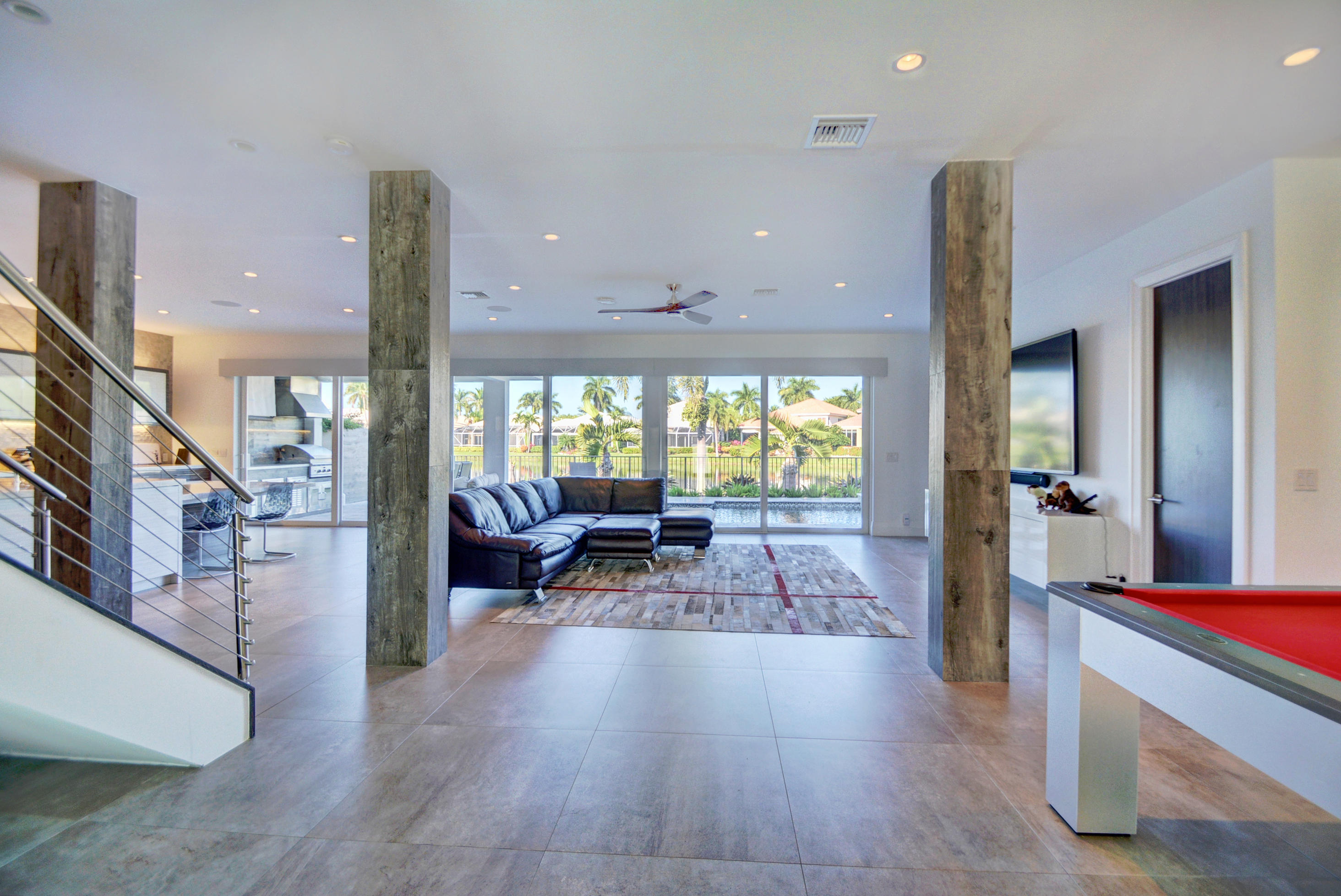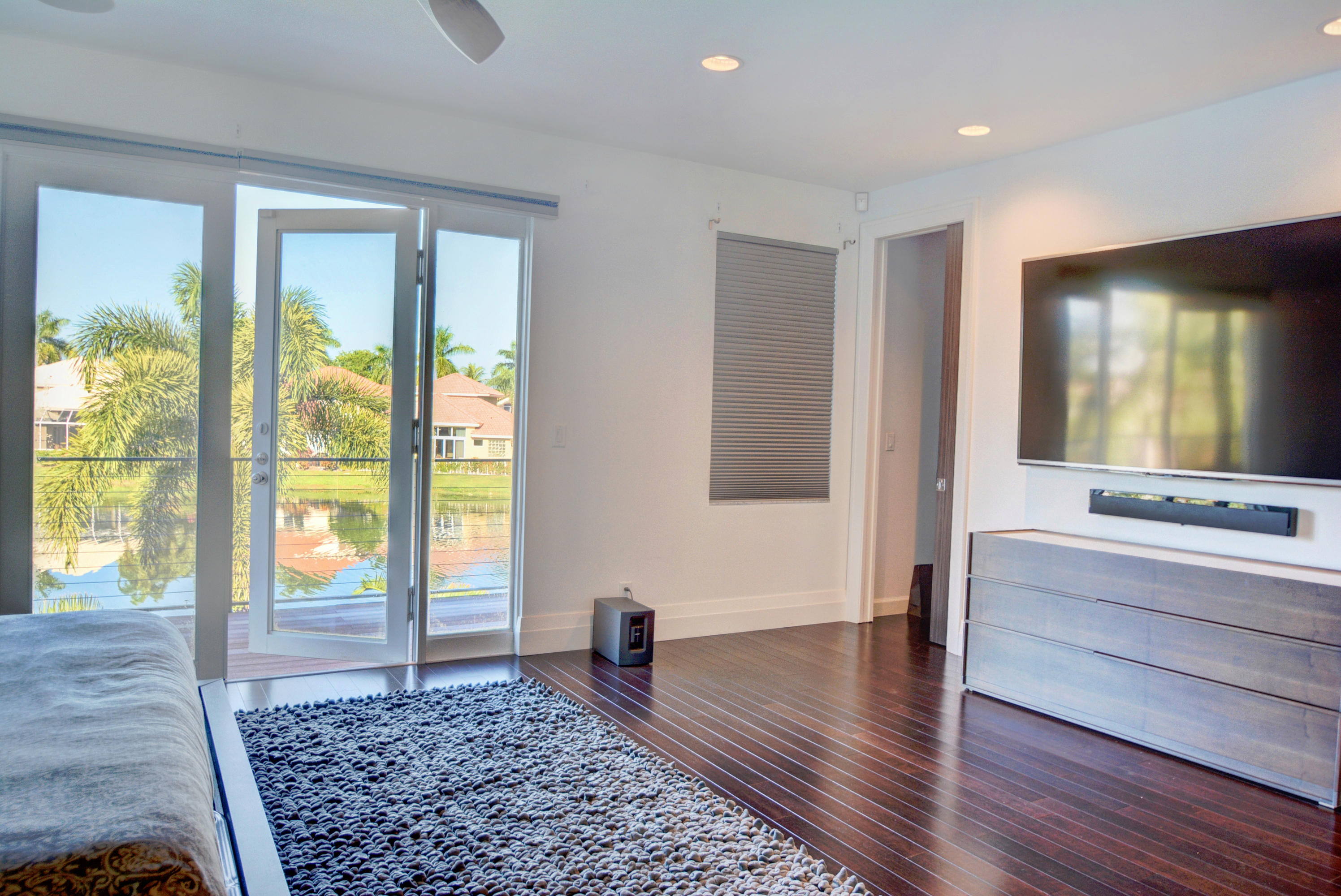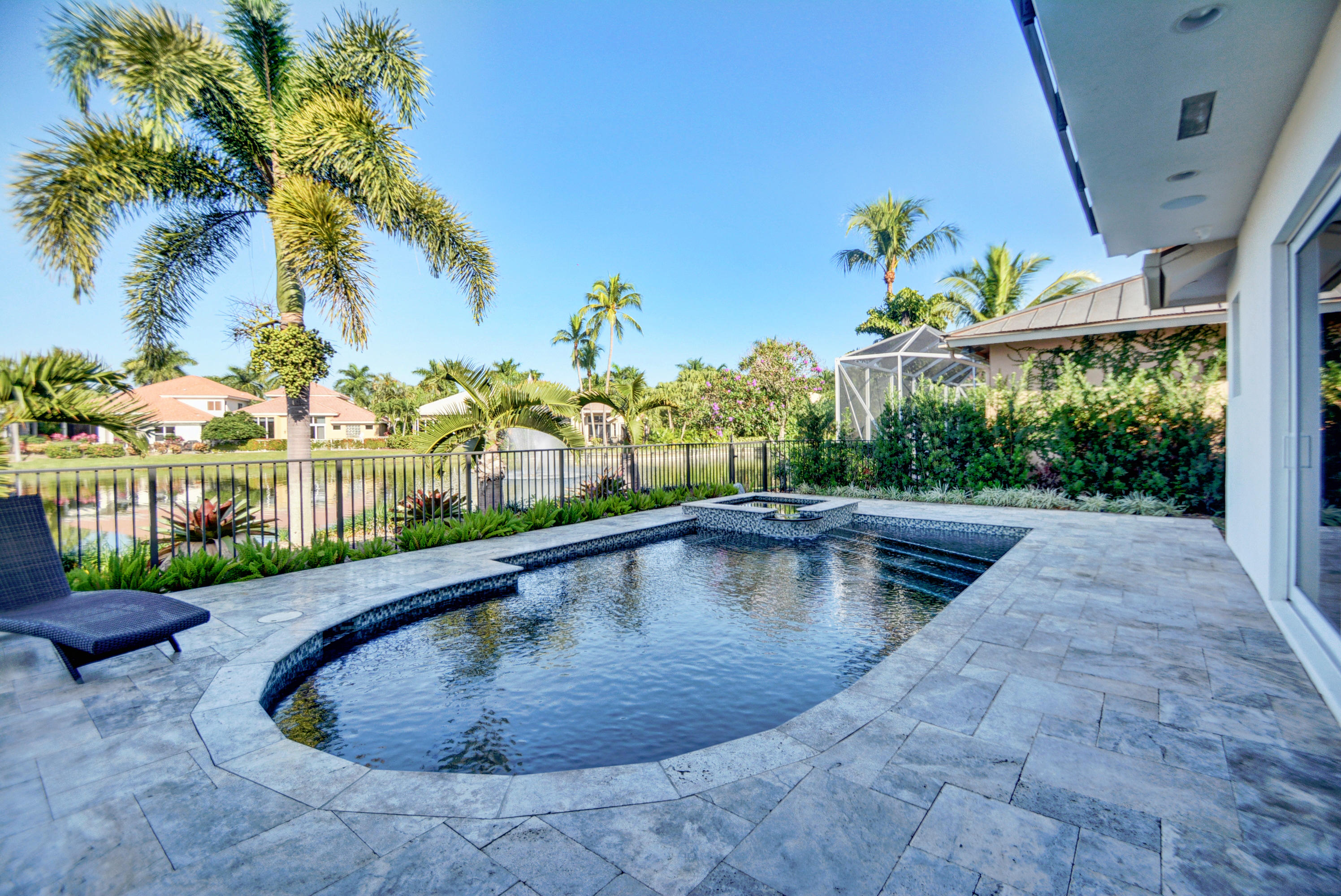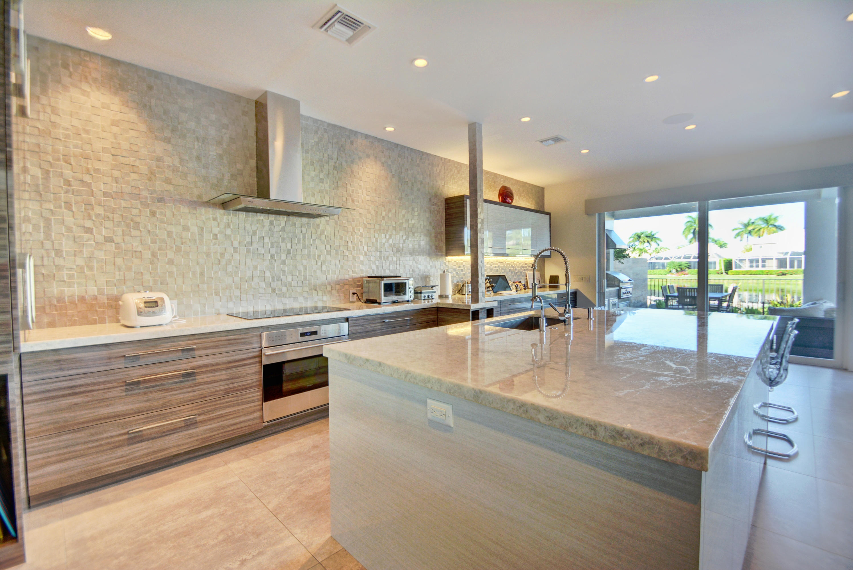 Enjoy serene lake views the moment you open the front doors into this exquisite contemporary smart home completely remodeled top to bottom!This light & open 4 BD/3 BA home offers volume ceilings;36'' porcelain tile floors,oak wood stairs & bamboo floors; wood grain tile walls & columns;a spectacular open island kitchen with high-gloss tiger wood-finish soft-closing cabinets,quartzite counters,stainless steel appliances;built-in Family Room & office credenzas;automated lighting,speakers,blinds,TV & A/C controls throughout;impact glass windows;new exterior & interior doors; custom closet design;newer A/C & water heater;beautiful balconies with marine grade floor planks & aluminum railings,newer roof & a fabulous patio with marble pavers;amazing summer kitchen & black-bottom pool on the lake.