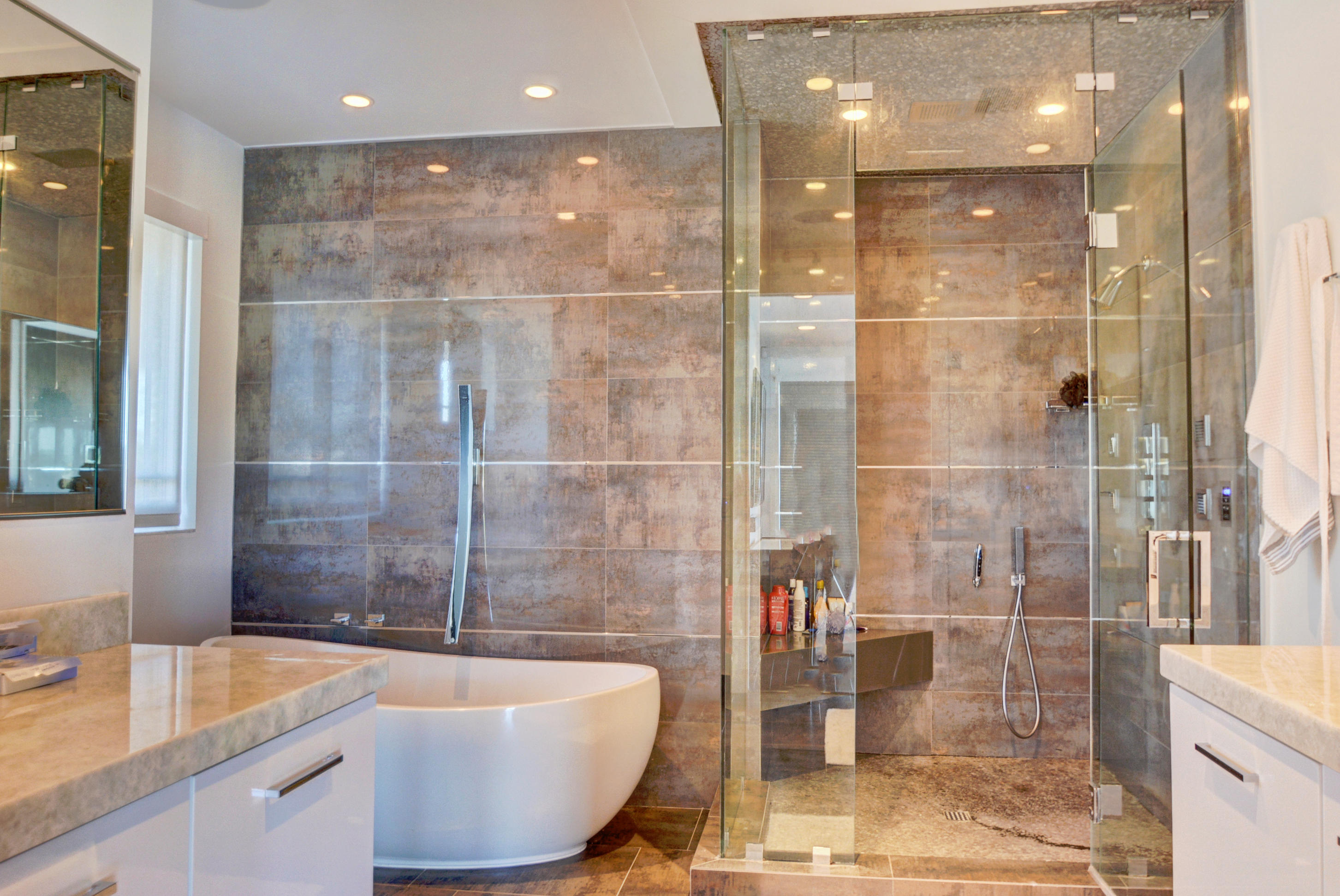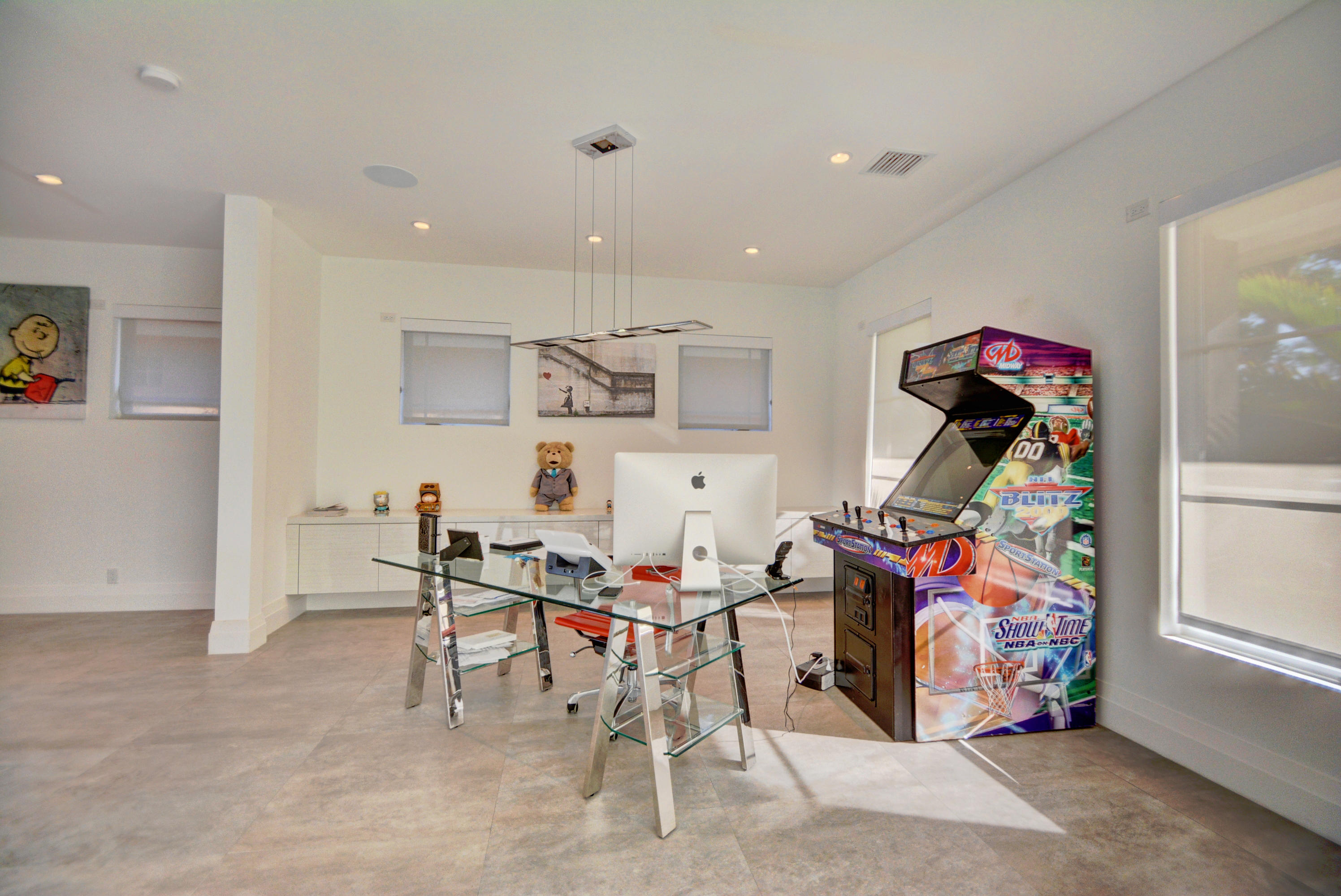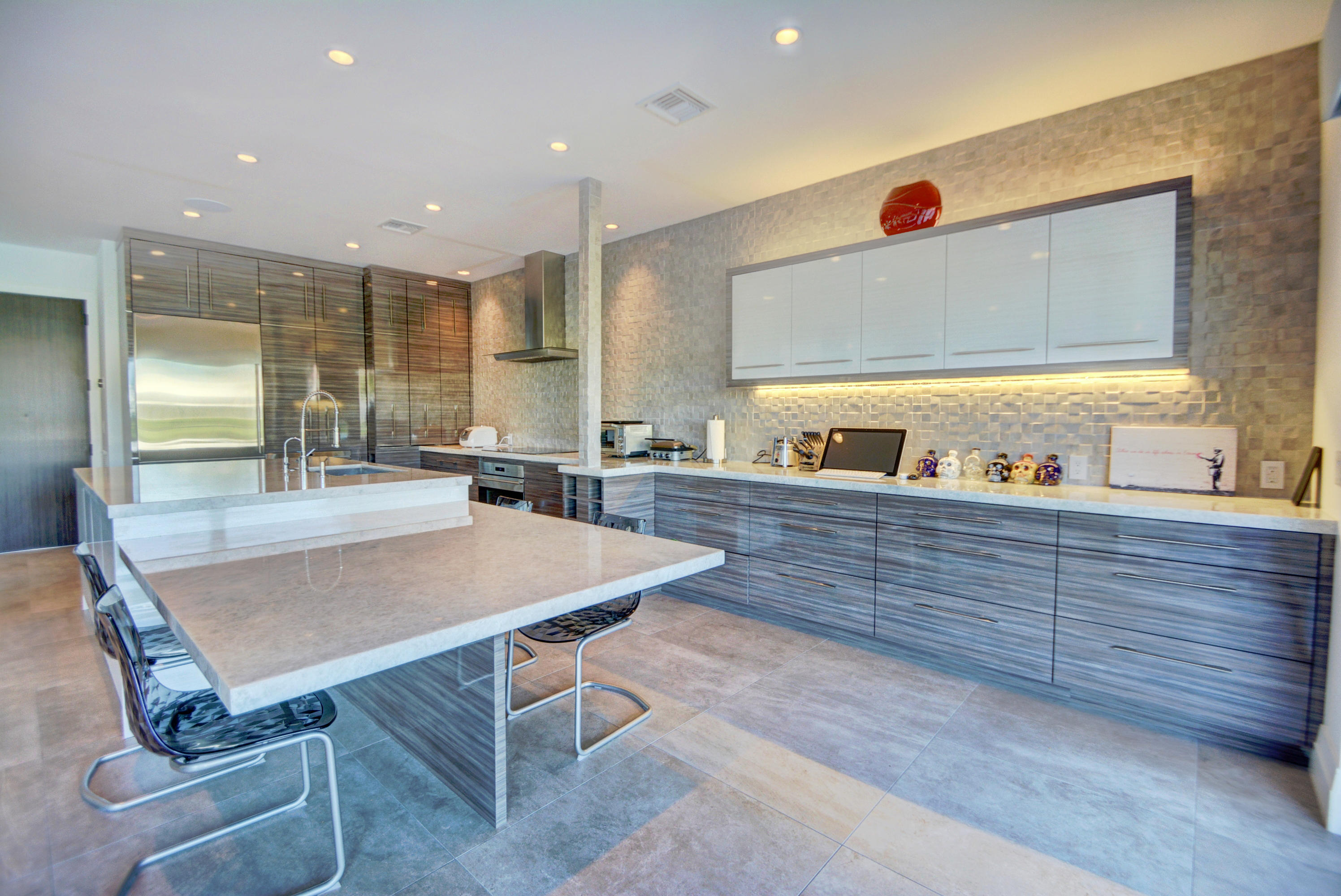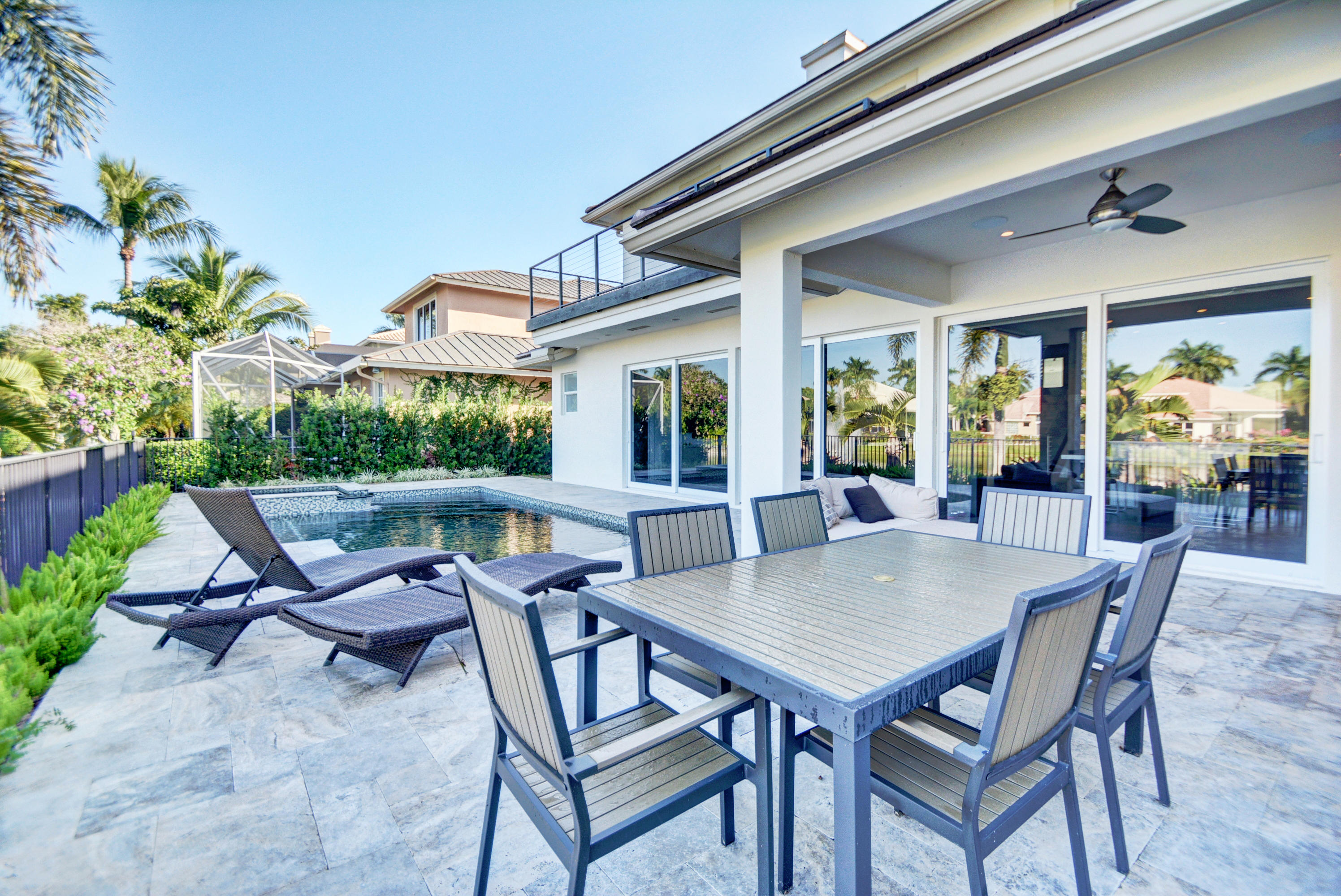 Enjoy serene lake views the moment you open the front doors into this exquisite contemporary smart home completely remodeled top to bottom!This light & open 4 BD/3 BA home offers volume ceilings;36'' porcelain tile floors,oak wood stairs & bamboo floors; wood grain tile walls & columns;a spectacular open island kitchen with high-gloss tiger wood-finish soft-closing cabinets,quartzite counters,stainless steel appliances;built-in Family Room & office credenzas;automated lighting,speakers,blinds,TV & A/C controls throughout;impact glass windows;new exterior & interior doors; custom closet design;newer A/C & water heater;beautiful balconies with marine grade floor planks & aluminum railings,newer roof & a fabulous patio with marble pavers;amazing summer kitchen & black-bottom pool on the lake.