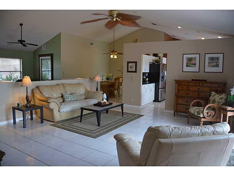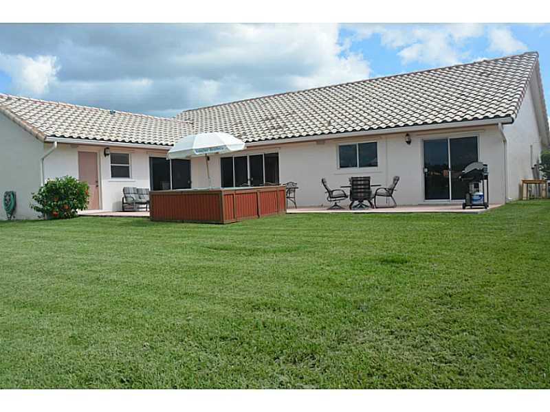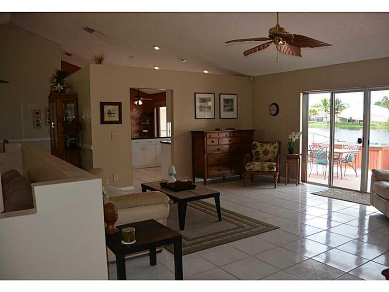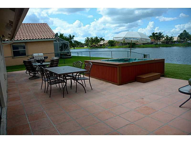 Sipping drinks in the Jacuzzi overlooking the wide view of the lake is included in this spectacular 4 bedroom, 2 bath home. Inside the home you will find a wide open floor plan, excellent for entertaining when you want to share the view and large yard wit h friends. Stainless steel refrigerator in the kitchen that boasts lots of room. Formal dining room. Vaulted ceilings, large master bedroom and bathroom. Great neighborhood. Hurricane shutters & yard is fenced to the water.