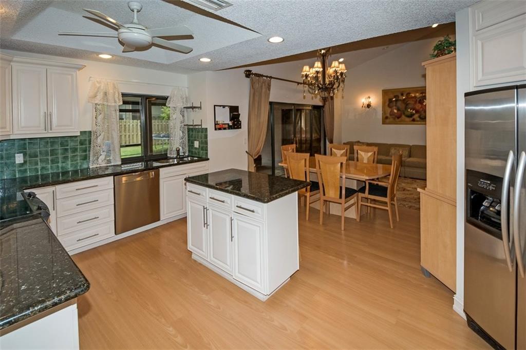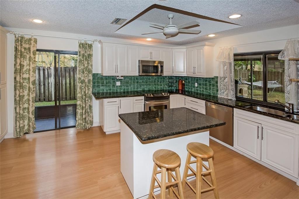 Beautiful describes this totally remodeled home Gorgeous kitchen: wood cabinets, center island, granite counter tops, stainless appliances. Magnificent master suite, both bathrooms remodeled, laminate flooring. Freshly painted interior. Exterior paint 2015. Roof - December 2012; A/C 5 years new. Extended roofed screened tiled patio, perfect for entertaining. Upgraded lighting & window treatments. Open concept with volume ceilings & natural light, fenced backyard, lush landscape. Attached feature sheet