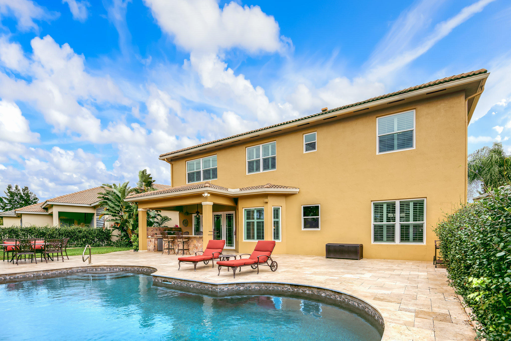 Stunning dream home in the heart of West Palm Beach! Over $150k of upgrades! This windward II model home boasts lots of natural light and high ceilings with Briar Bay's coveted largest floor plan offering 3860 sqft, 5 bedrooms, 4 full bathrooms, 3 car garage, and large den upstairs perfect for kids play/rec room. Move-in ready with fresh paint, new 2015 AC units, new hardwood flooring, all new hurricane impact windows and doors, crown molding throughout, plantation shutters, upgraded kitchen cabinets, granite counter tops, and stainless steel appliances. Master has his & hers walk-in closets closets and large en-suite bathroom and sitting/exercise nook. The backyard is an entertainer's dream with all new travertine pool deck, stunning pool, full outdoor kitchen, and fully fenced backyard.