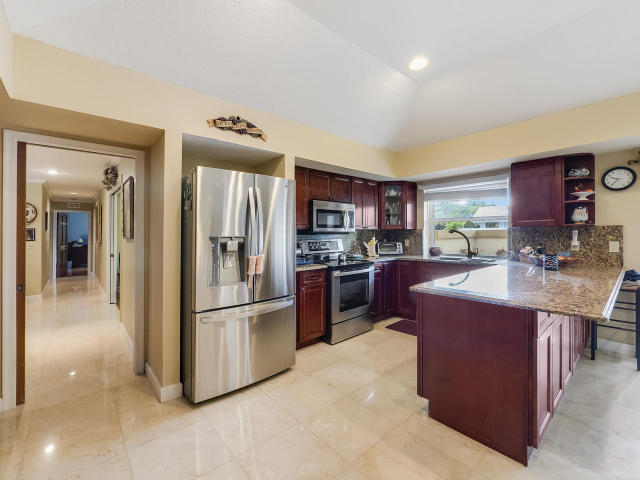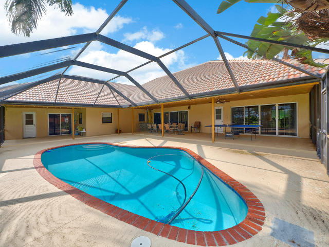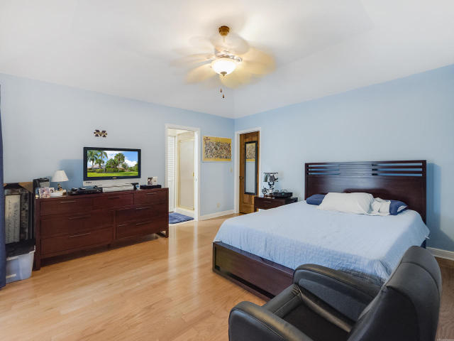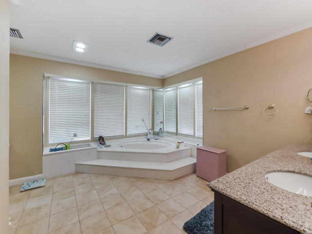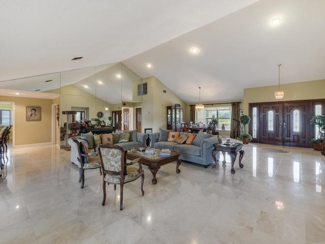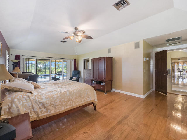 Bayhill Estates is a hidden gem of a community, gated, where each property sits on an acre or more surrounded by endless golf/water views. This home has over 3.500 sq ft with a very open floor plan, volume ceilings. Kitchen and baths have all been updated. Roof was replaced. Master has his/her separate baths. Bedrooms with own private baths. Newer marble flooring and wood floors in family room. Hidden den/office/hobby room. Professionally done garage floor. Screened in Lanai over large pool that overlooks the golf course. Very low HOA fees. Community offers paths to walk & jog-golf membership optional.