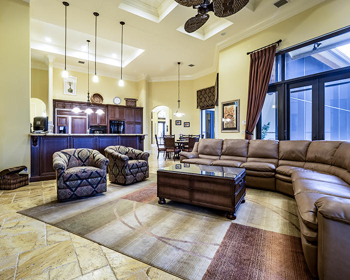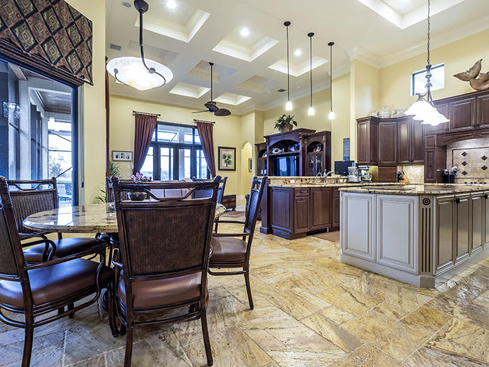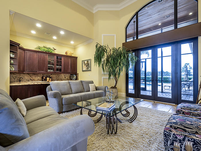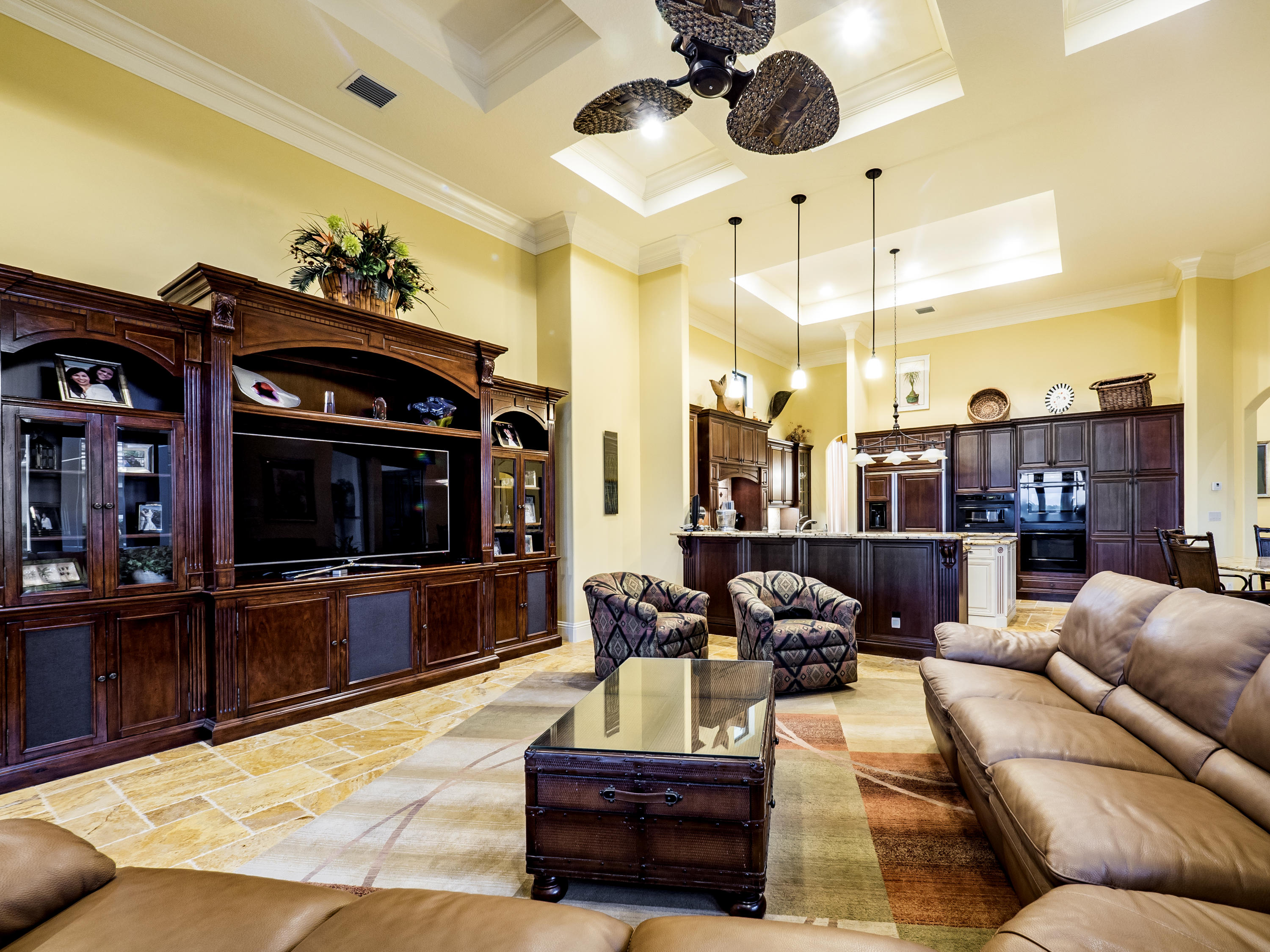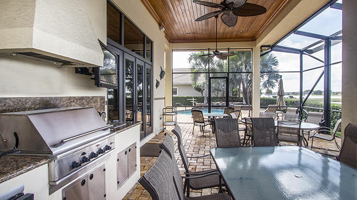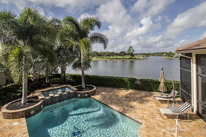 Located on one of Ibis's most breathtaking water lots, this 2008-built Dreamstar masterpiece boasts wide lake views, soaring ceilings, warm rich tones, and all the designer upgrades you would expect in this price range. Exceptional quality throughout this 5BR/5.5BA+Den+Exercise room. The sellers have incorporated upgrades not featured anywhere in Ibis: Icynene insulation (sprayed foam-like material on attic ceiling) which keeps the house cooler, greatly reducing electric bills. Solar water heating system for salt water pool and spa, and hot water tank. Spacious gourmet kitchen w/ GE Monogram appliances & 2 Bosch dishwashers. Stunning marble floors, custom extra-large screen enclosure, custom library built-in w/ladder on brass rail, Cypress ceiling in oversized patio and loggia, much more.