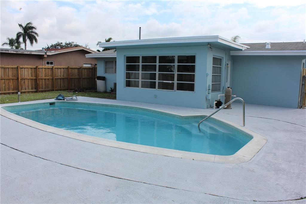 Just renovated and ready for you! Beautiful 2 bedroom 1 bath with a pool. New or near new kitchen appliances including SS refrigerator and microwave - oven. Home has central air. All tile and wood floors. Kitchen and bath have been upgraded. Florida or Family room with magnificent pool view. All new fencing around newly landscaped yard. Exterior shed. Wonderful pool. Great home!