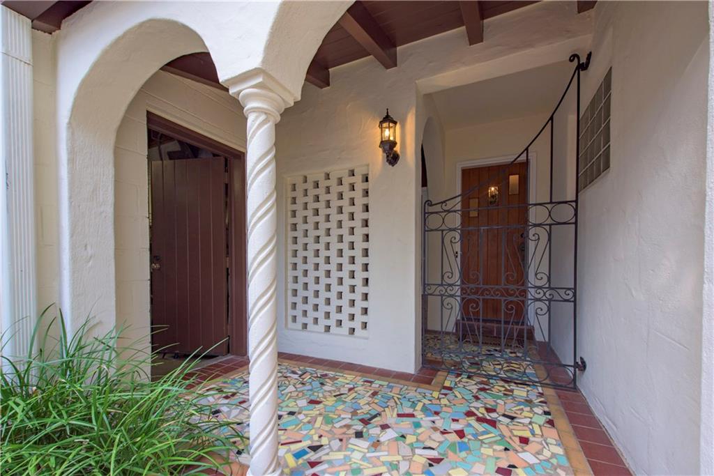 Authentic 1930's Mizner-like design offers thick stucco walls, colorful glazed Cuban tile floors, beamed vaulted ceilings, a wood burning fireplace and a gated portico entry. Carefully updated, restored and renovated this home boasts a formal foyer, a private bank of guest rooms, a secluded master and two well-proportioned lounges for entertaining. The dining room with vaulted ceiling offers a wall of windows that face a secluded courtyard terrace. Situated on a 145x75' lot and only steps to Las Olas