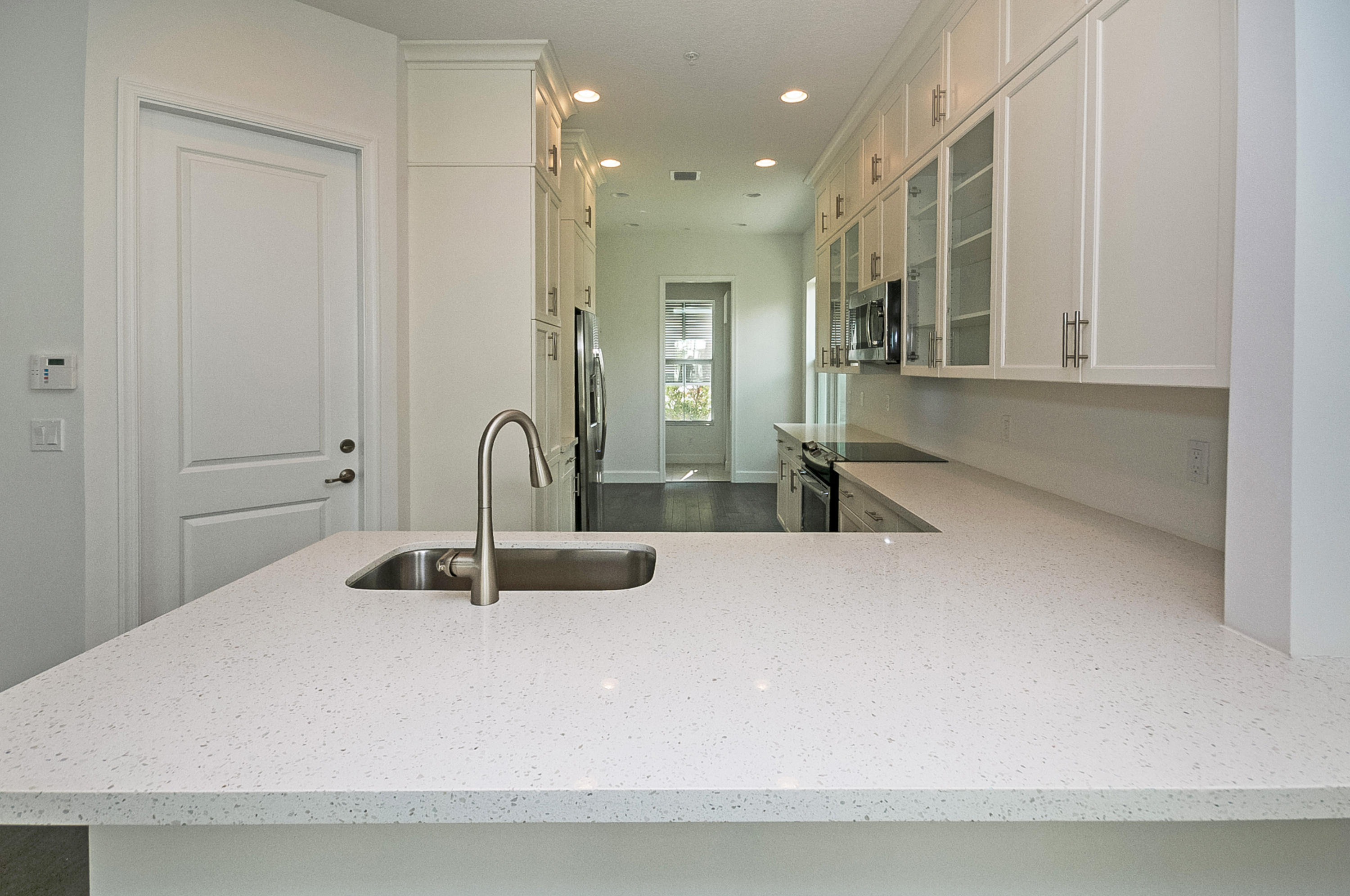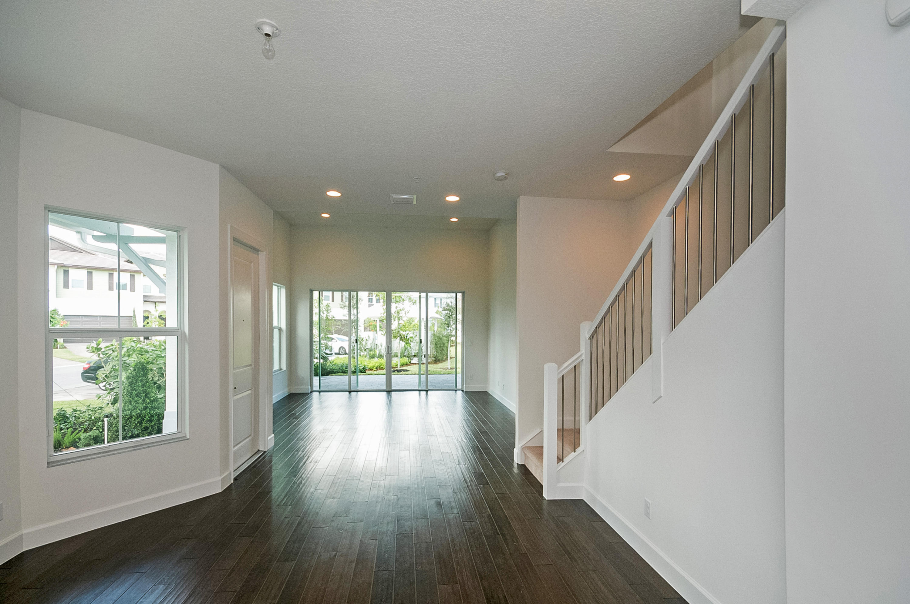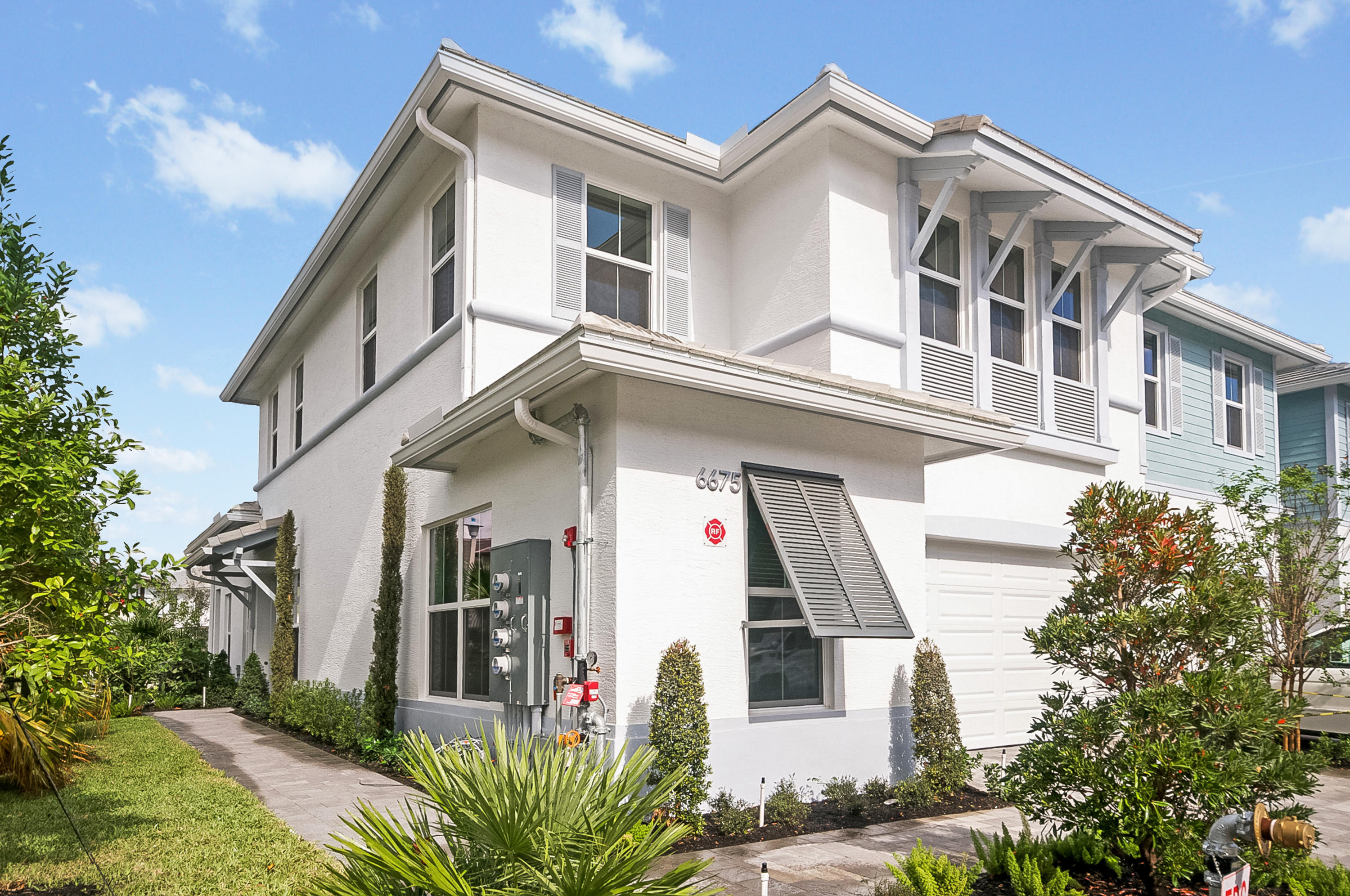 This contemporary Coastal Modern inspired Townhouse has been lightly lived in and is ready for immediate occupancy. The large corner lot location has been lushly landscaped for privacy. Over $30K of upgrades featuring: large master bedroom on first floor,white contemporary kitchen with quartz countertops, upgraded stainless steel appliances, cabinetry to the ceiling,engineered wood flooring on first floor,upgraded carpets,additional high hats throughout,upgraded laundry room cabinets. Hurricane Impact Windows! An additional list of upgrades is attached. Membership to Boca Pointe is not required but available.