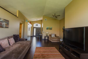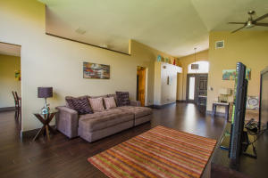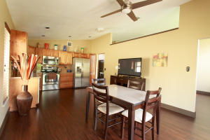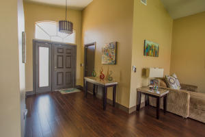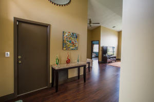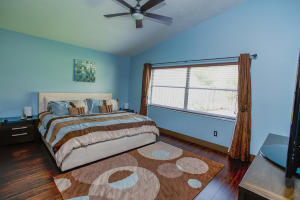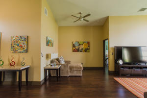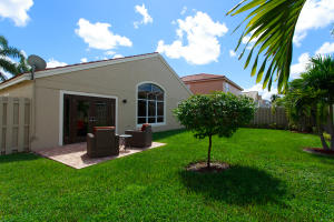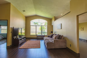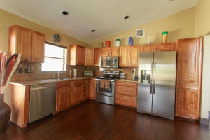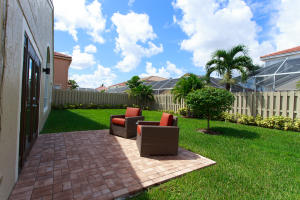 This exceptional home has so many carefully chosen upgrades it will impress the most discerning buyer! Beginning with your walk through the front door, complete with hurricane impact glass and side light, stepping onto the Duravel Premium Laminate Flooring in every room, including closets; with 5'' baseboards throughout; you will sense that this is a great place to come home to! The kitchen has been equipped with beautiful wood cabinetry and granite counter tops with a full granite back splash, under mount sink and upgraded Whirlpool stainless steel appliances less than 1 year old. There are also hurricane impact doors leading out to the patio, with new brick paving stones, lush new sod, palm trees, and landscaping, as well as the completely repaired and newly stained fence (continued).