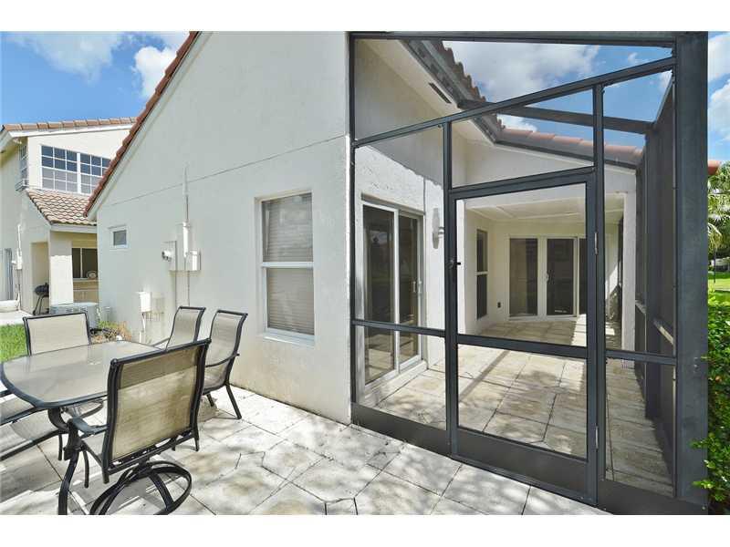 Beautifully updated 2/2 on the water in Weston's desirable Garden Homes! New Kitchen featuring: Wood cabinets, granite counters, stainless steel Whirlpool appliances, wine rack & lazy susan, under cabinet lighting. All doors & windows are impact glass! Newer Roof & water heater, newer Trane A/C. Updated master bath & large walk-in closet. Both bedrooms large. Detached garage. Rear covered & screened patio, plus an open patio to enjoy tranquil evenings entertaining on the water! Large lot. HOA cuts lawn.