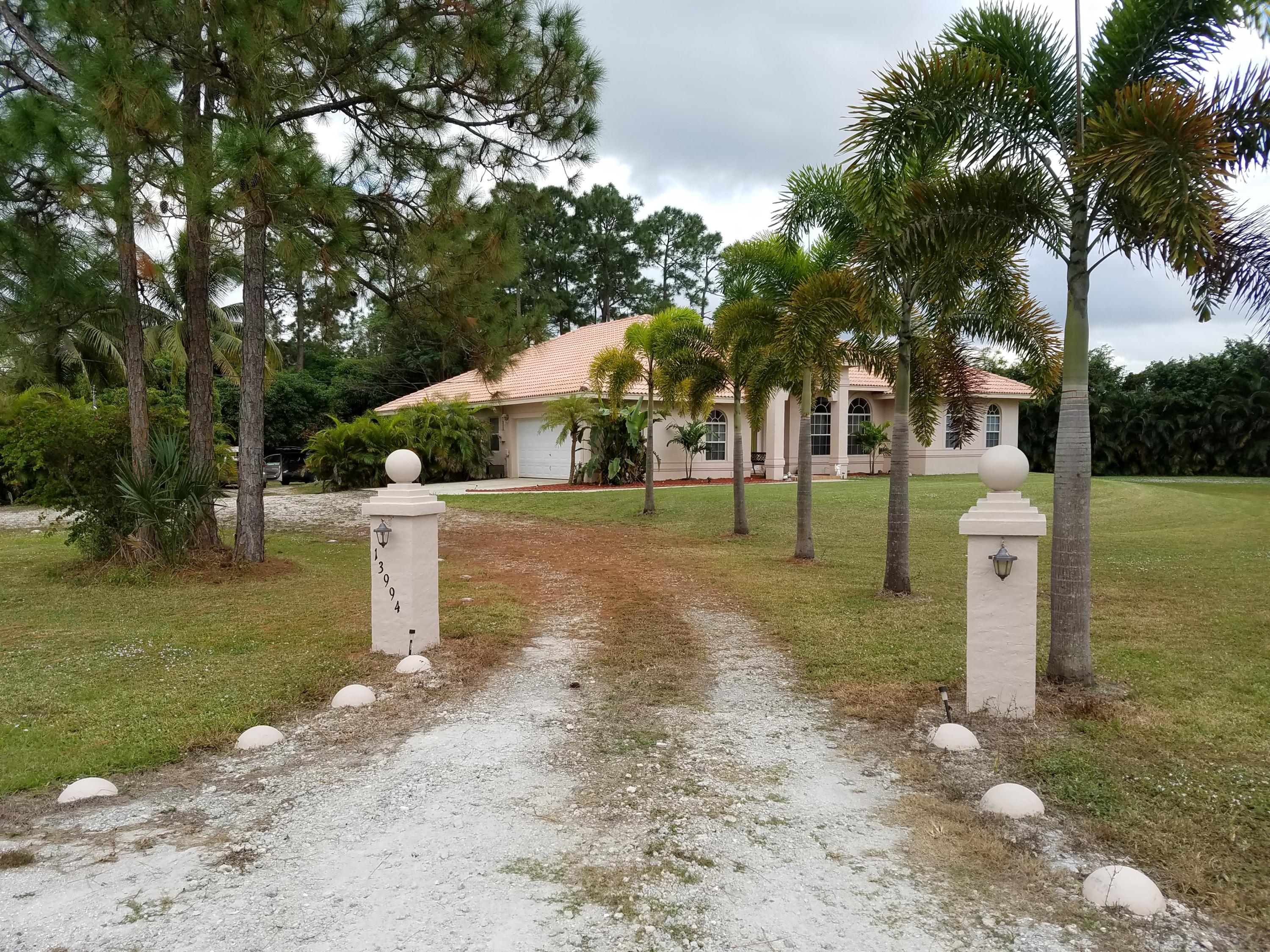Beautiful house in a the corner of 140th and 77th PL N at West Palm Beach.1.78 Acres with City Water and Well Water available as well. Several fruit trees. Nice green area. Close to Publix Loxahatchee, County Library, Walgreens and more.
