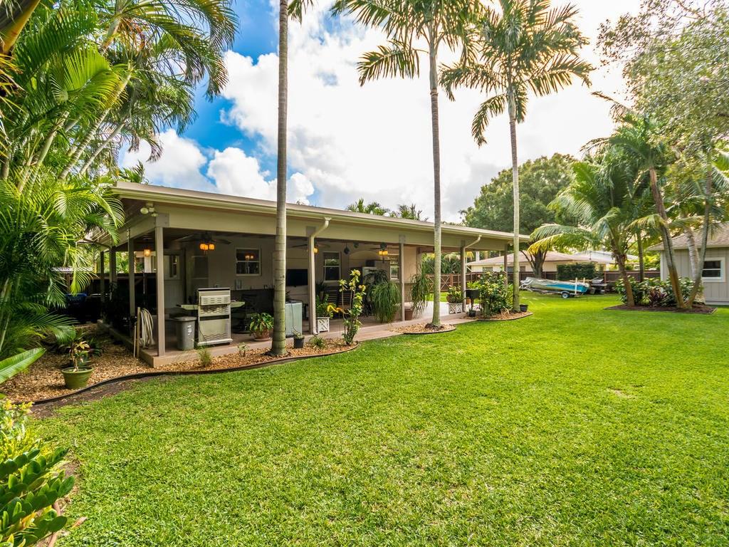 BEAUTIFULLY REMODELED HOME SITS ON A PERFECTLY LANDSCAPED "DOUBLE SIZED PROPERTY LOT". TASTEFULLY DONE NEWLY PAINTED INTERIOR & EXTERIOR, KEYWEST & NEUTRAL COLORS, TILE & WOOD LAMINATE FLOORING, STAINLESS STEEL APPLIANCES, SILESTONE KITCHEN COUNTERTOP, A FABULOUS COVERED PATIO USED FOR ENTERTAINING AND BARBEQUES, WOOD PRIVACY FENCE, DETACHED GARGAGE THAT CAN EASILY BE CONVERTED INTO COTTAGE, CONCRETE PAD FOR BOAT STORAGE, IRRIGATION SYSTEM TO SUPPORT LUSH LANDSCAPING. GREAT LOCATION. THIS HOME HAS IT ALL!