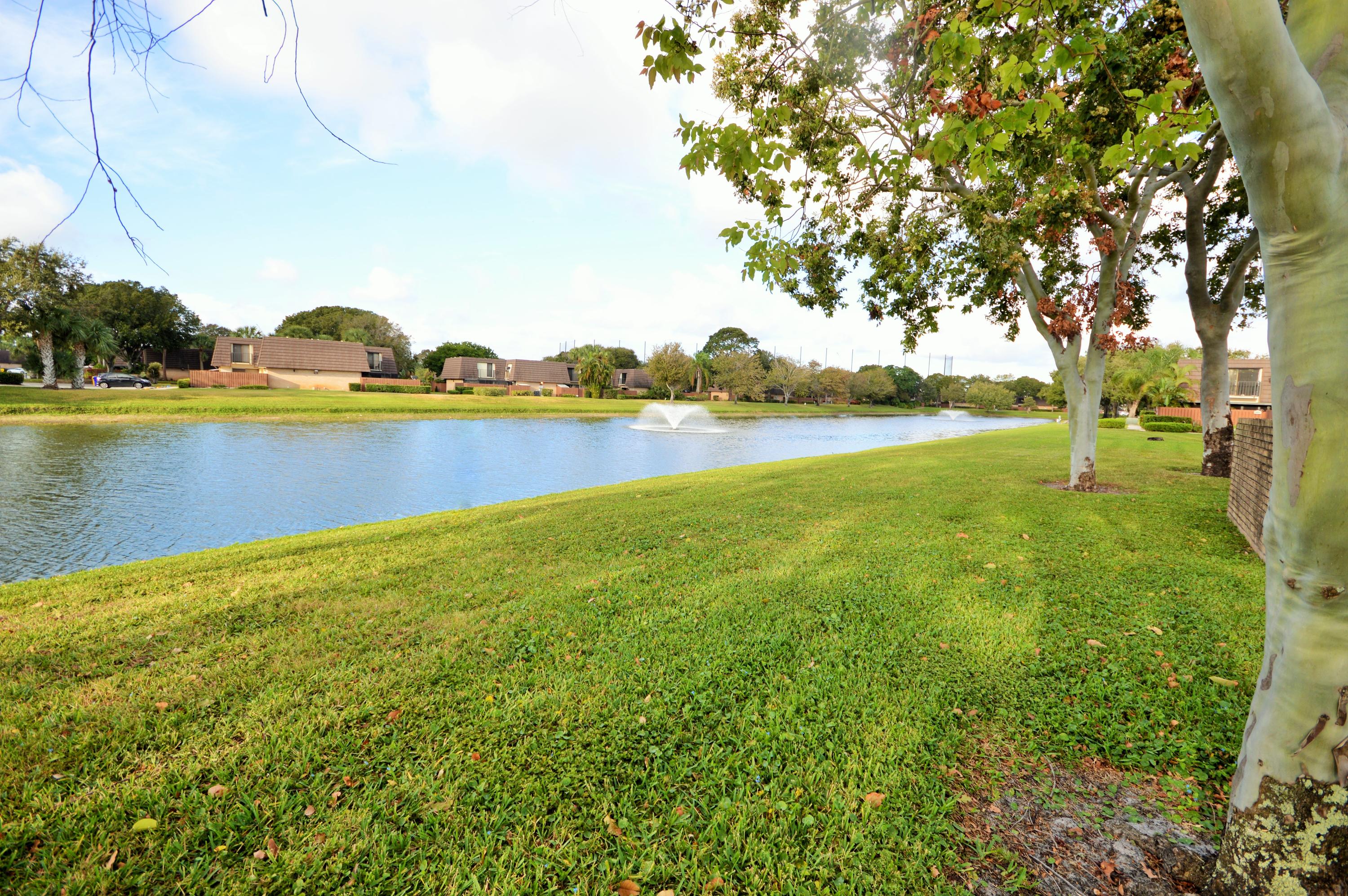Premium Lake view location! This beautiful 2 story townhouse is located directly on lake and has 2 bedrooms and 2.5 bath with large fenced patio. Home is very clean and ready for a new owner. The kitchen has newer appliances and light fixtures. Floors are tiled throughout lining area and stairs. Master bedroom has wood floors, walk-in closet and bath with 2 sinks and shower. All tastefully painted and finish with crown molding. The A/C unit is from 2005 and roof 2006. Community offers pool, tennis, clubhouse, walking and biking trails and recreation area. Community is pet friendly and located next to Ball Park new spring training facility, 10 min from PBI Airport and commerce.