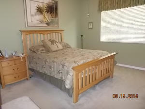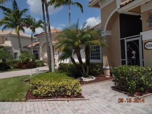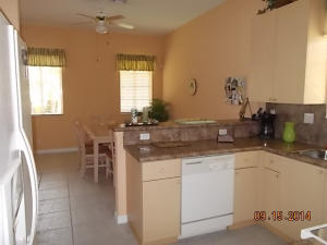 Well maintained single story home at the end of a cul-de-sac. Walk in through a screened-in entryway. Spacious extended screened-in patio can be accessed from living room, family room and master bedroom. Spend time on the patio and enjoy the sun and a partial lake view or enjoy your meals in the shade provided by the overhang. This is a 2 bedroom and den. However, the den/office can be converted to 3rd bedroom by adding a closet. Area off of kitchen can be used as a family room or extended kitchen area. Large master bedroom and bathroom. Separate room with washer/dryer and utility tub in garage.Accordian shutters on all windows!Carpet in living area was replaced 5 yrs ago.This is an active guard-gated community with 10,000 sq ft clubhouse, pool, state of the art gym, tennis courts,