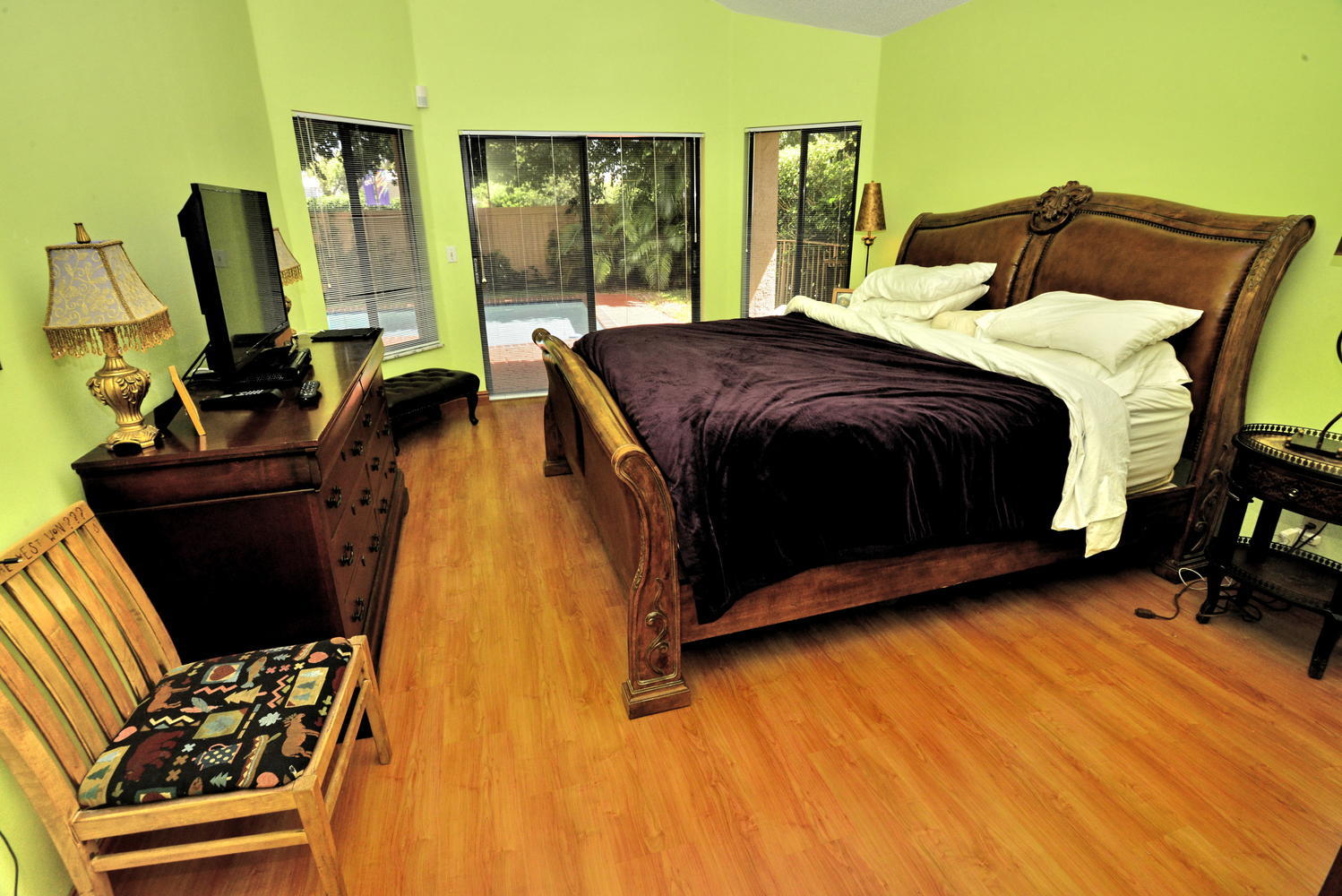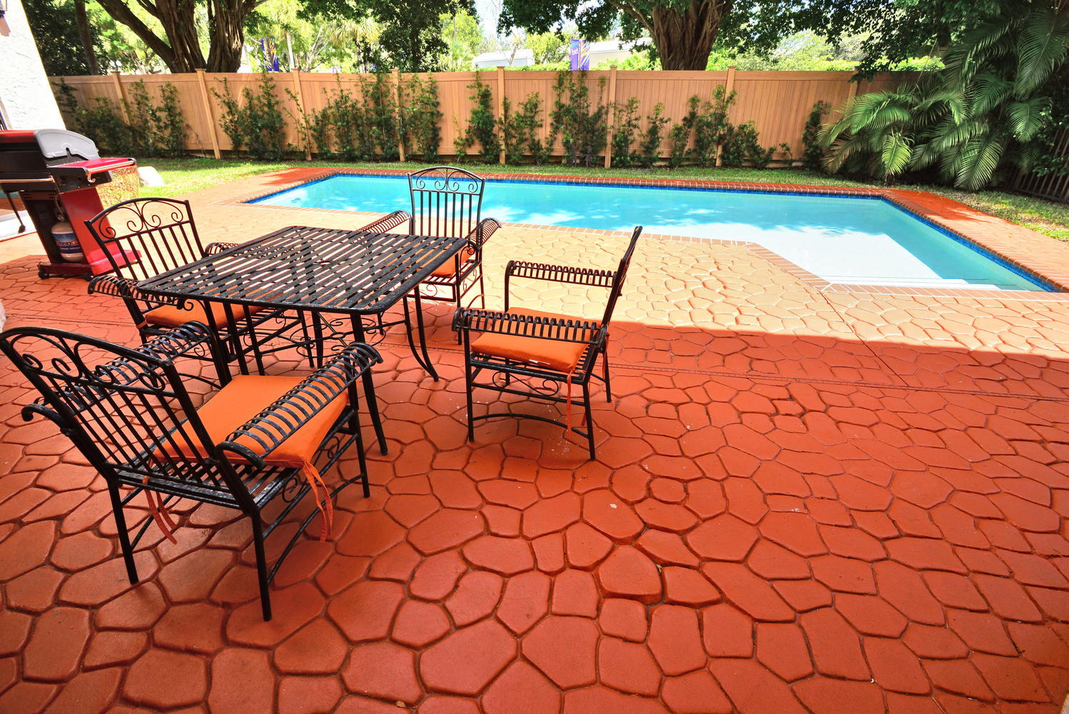 In Boca Raton, you can practically swim all year round and play golf! Splendid split bedroom floor plan home in private gated with video camera surveillance and HOA community. Open your front door to look into your private fenced back yard and beautiful pool while sitting in your large family room with ceramic tile floors and high ceilings. Large owner's suite with her/his walking closets and with sliding doors with view to the marvelous patio. 2 of the bedrooms are connected by a bathroom and 4 bedroom can be converted to a studio. Throughout the bedrooms and family room find laminated wood floors. Spacious Kitchen updated with granite and newer stainless steel General Electric appliances and pantry cabinet. The house has panels and 3 accordion type shutters.
