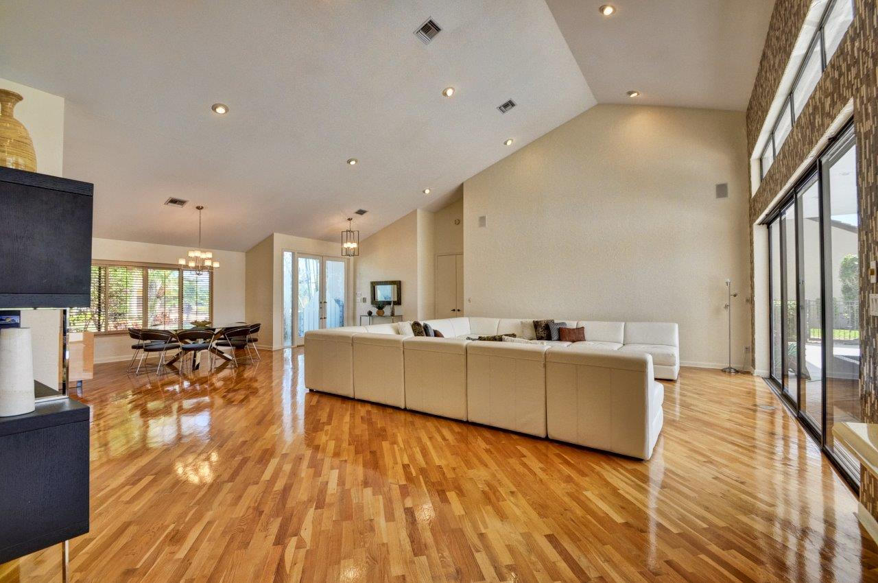 GORGEOUS GOLF COURSE POOL HOME.OPEN FLOOR PLAN WITH HIGH CEILINGS.BEAUTIFUL WOOD FLOORS THROUGHOUT WITH COMPTEMPORARY FLAIR.SPACIOUS MASTER WITH UPDATED HIS AND HER BATHS.SEPERATE GUEST BEDROOMS WING.HUGE SUNNY COVERED AND OPEN PATIO.2 CAR GARAGE PLUS GOLF CART GARAGE. GOLFER'S HEAVEN,NO TEE TIME.EXCELLENT CLUBHOUSE WITH FINE DINING,FITNESS,POOL ETC...