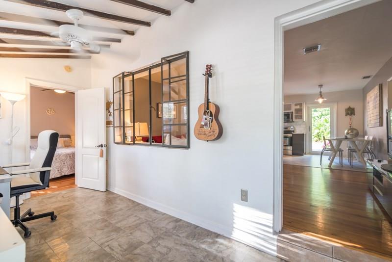 This lovely Hollywood Lakes home is perfect for those wanting to live where they are just minutes to the beach and the street vibe of Downtown Hollywood. This home is in move in condition, needs nothing. With new impact glass windows through out as well as new back patio area. The master bedroom and bathroom is set apart from the other two bedrooms and has a den/office area. With the huge private backyard and swimming pool this home is great to entertain.