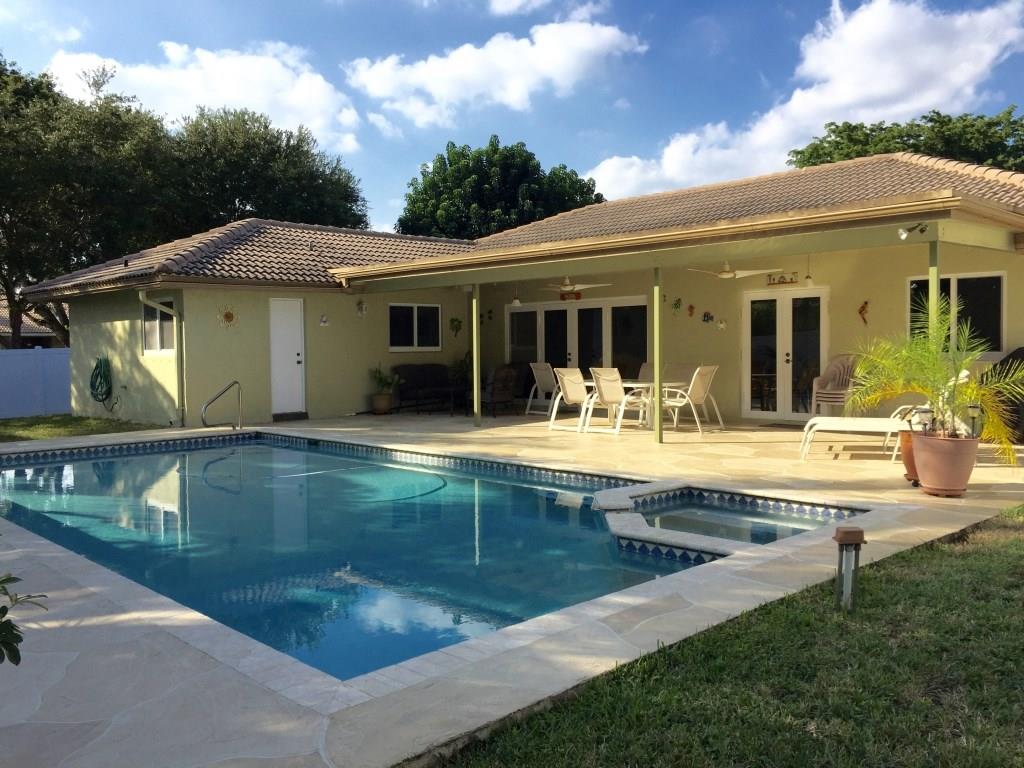 Beautiful 4/2 with a large pool and two car garage on oversize corner lot in Jacaranda Lakes. Home features; new barrel tile roof in 2005, pool diamond brite & coping 2006, new hurricane impact windows and doors 2014, Hurricane garage door 2002, white PVC fence, exterior paint 2016, front paver patio 2016, circular driveway, tile floors, laminate in the four rooms, upgraded second bathroom 2009, generator plug on exterior electrical panel, surround sound wiring in family room, porch speakers and fans.