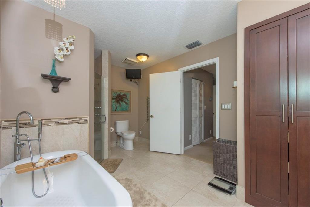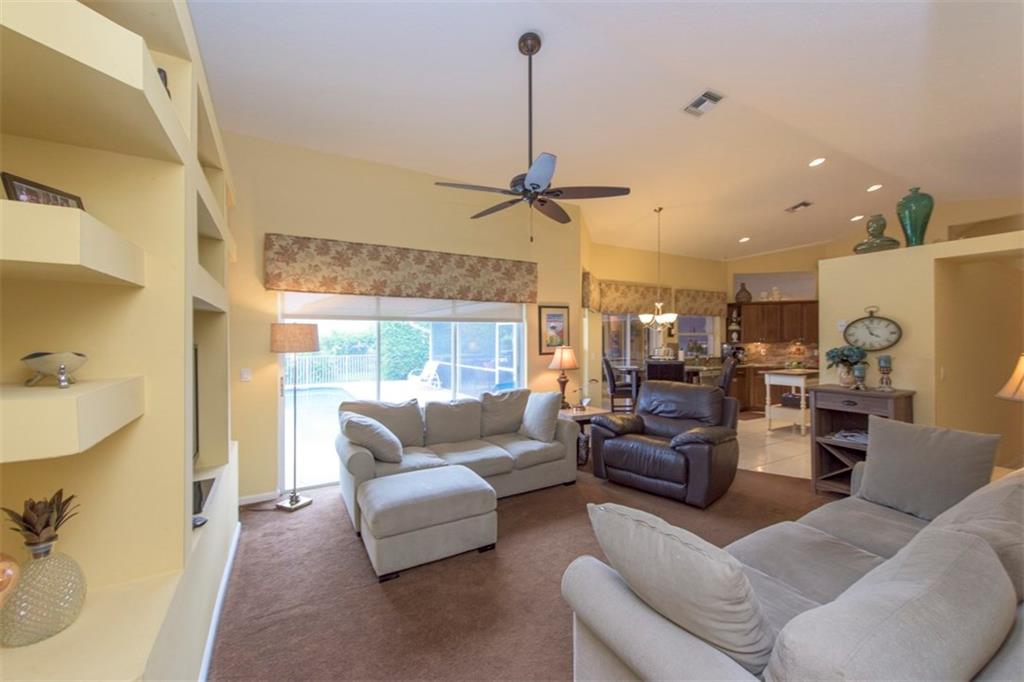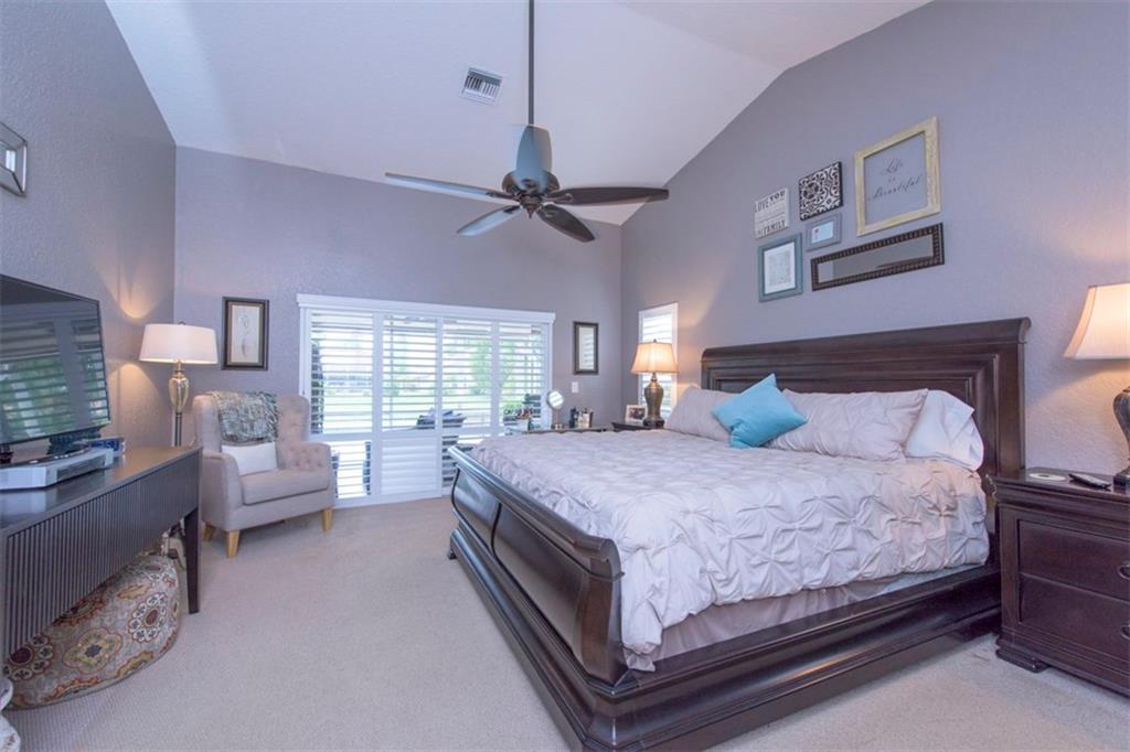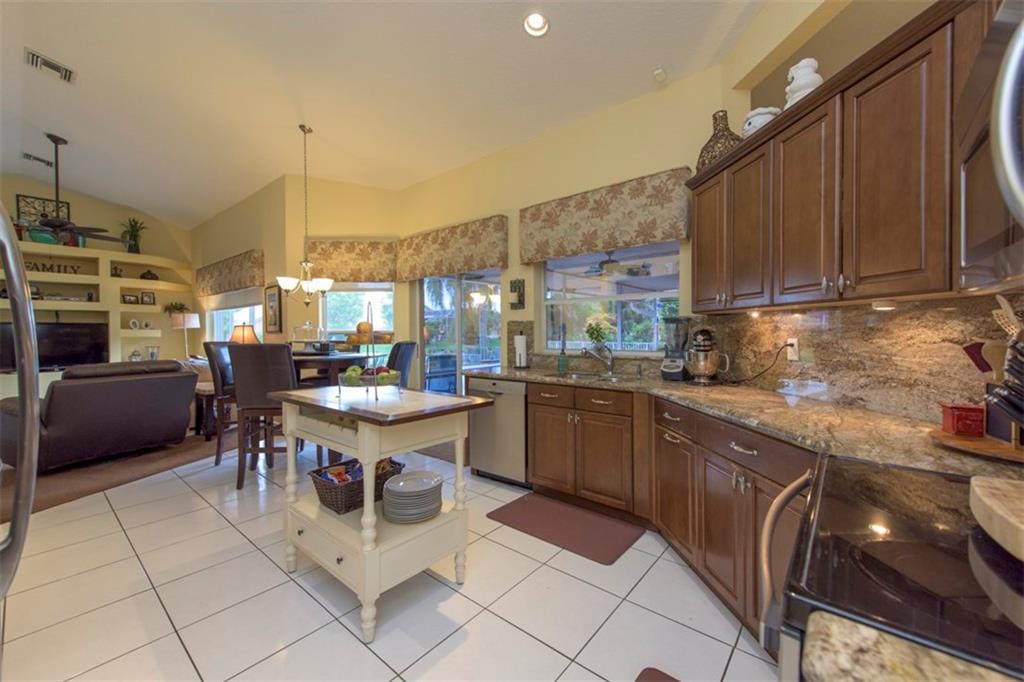 Premium waterfront, cul-de-sac location & beautiful elevation, circular drive & stunning double door entry initiate this updated home's appeal. Outstanding features include: updated kitchen w/raised panel, wood cabinets, granite counters & backsplash & stainless steel appliances; all 3 bathrooms updated w/frameless shower doors, new cabinets, fixtures, etc. (MBA incl. free-standing tub!); plantation shutters throughout; & expansive patio w/open pool, screened loggia & fenced yard. Full house generator!