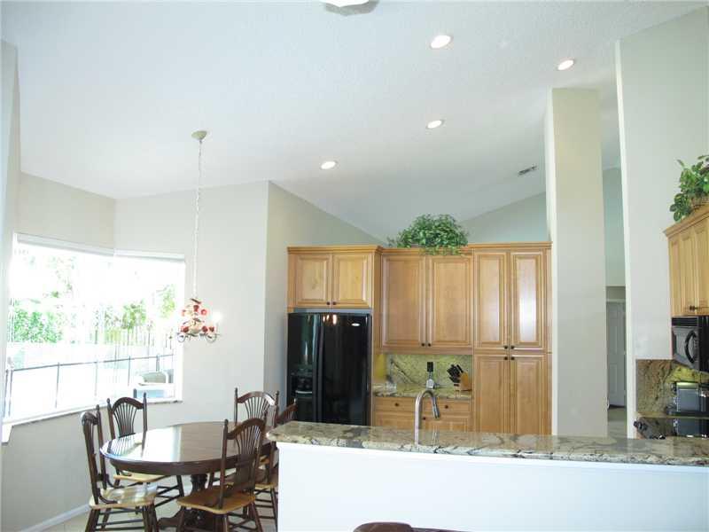 Remodeled split bedroom home with many upgraded features. Beautiful wood kitchen cabinets & granite counter tps. range/oven is new. Bosch dishwasher is 1 year old. Beautiful newer tile floors in main living area and wood floors in master and bedroom 4. Ma rble master bathroom with gorgeous wood cabinets, separate shower & tub. Bathroom 2 also remodeled with new wood cabinets, marble tops & Marble walls in tub area. Fenced yard & open pool. Crown moldings. Cabinets & tub in Laundry rm. a/c replaced in 2008.