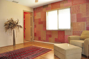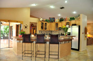 WALK THRU THE DOUBLE DOOR ENRTY INTO THIS AMAZING SPLIT FLOOR PLAN HOME IMMACULATELY CARED FOR, WITH 18'' PORCELAIN TILE IN THE ENTRY HALLWAY, KITCHEN AND FAMILY ROOM AND LAMINATE WOOD IN THE REST OF THE HOUSE. SUN LIGHT POURS INTO THE HOUSE THRU THE 5 SLIDING DOORS THAT OPEN TO THE SCREENED PATIO WITH MEXICAN TILE FLOOR AND A 15' X 30' POOL AND SPA. THE LIVING ROOM IS BATHED IN LIGHT BY THE 3 CATHEDRAL WINDOWS THAT ADD CHARM TO THIS LOVELY ROOM. THE KITCHEN IS REMODELED WITH LIGHT WOOD CABINETS, STAINLESS STEEL APPLIANCES AND AN EAT-IN COUNTER. THE KITCHEN IS OPEN TO THE FAMILY ROOM WITH A SOUTHWESTERN MOTIF AND A BUILT-IN WALL UNIT AS THE FOCAL POINT. THE MASTER BEDROOM'S BATHROOM HAS BEEN REMODELED WITH A GRANITE COUNTER TOP AND DARK WOOD CABINETS AND YOU CAN ALSO ENJOY A LUXURIOUS
