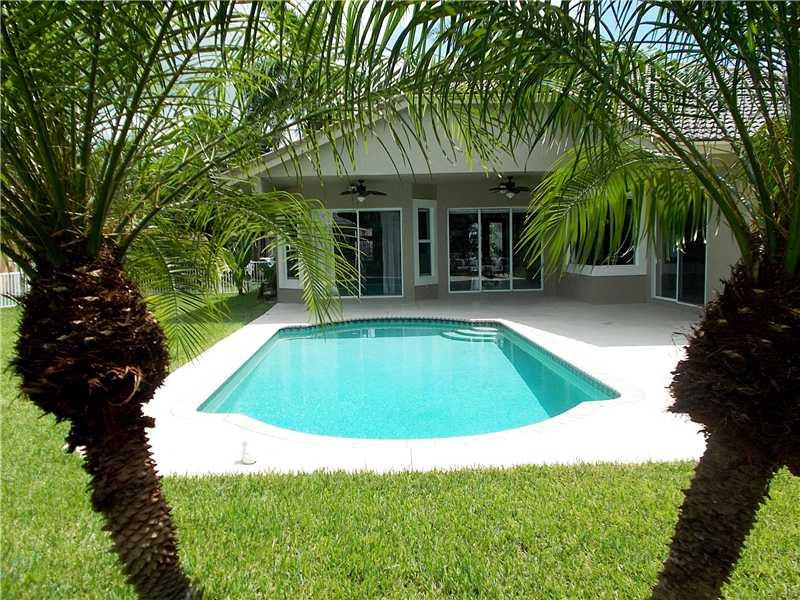 PERFECT CUL-DE-SAC LOCATION, SET ON A HUGE LOT WITH LOVELY POOL & SPRAWLING FENCED BACKYARD! 5 BR. 3BA. WITH A 3 CAR GARAGE. TRIPLE SPLIT FLOOR PLAN WITH, LARGE TILE LAID ON DIAGNOL, VOLUME CEILINGS & 8 FT. DOORS. OUTSTANDING KITCHEN FEATURES 42' CABINETS IN CREAM, ALL HIGH END STAINLESS STEEL APPLIANCES, GORGEOUS GRANITE & TUMBLED STONE BACKSPLASH, OVERLOOKING FAMILY ROOM FOR GREAT ENTERTAINING. NEWER A/C & WATER HEATER. STORM SHUTTERS AND SO MUCH MORE! SOUGHT AFTER NEIGHBORHOOD, WITH LOW LOW HOA FEES!