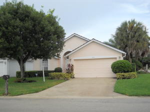 Dining/Den could be a 3rd BR, Accordion shutters, gutters added, newer refrigerator & disposal, A/c system 2 yrs., tiled throughout, skylight in master bath, Double Front entry doors replaced this yr. Main. fees include front & side landscape & irrigation Community Park just east of Leicester Ct. w/tennis, racquetball, kiddy pool, slides & swings, a beauty of an x lg. swimming pool w/shaded areas & chaise's. 5 minutes away,Village Commons offers varied eateries Publix Grocery, Beverage store & more; close to discount mall on P.B. Lakes Blvd., minutes to I-95, PBIA airport, City Place, movies. 15 min. to Singer Island beaches.