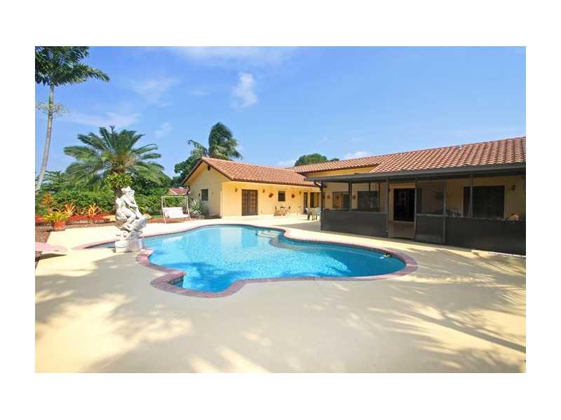 BEAUTIFUL POOL HOME SURROUNDED BY LUSH TROPICAL LANDSCAPE-HEART OF DAVIE'S DESIRABLE HORSE COUNTRY!OPEN/SPACIOUS FLOOR PLAN/HIGH CEILINGS,OPEN KITCHEN/FAMILY ROOM+LARGE FORMAL LIVING & DINING ROOMS!VAULTED CEILINGS,FRENCH DOORS,BIG BEDROOMS WITH WALK IN C LOSETS!LOVELY MASTER SUITE,ZONED A/C'S,DEEP WELL!ROOF IS 2 YRS. HUGE SCREENED PATIO& HUGE OPEN PATIO+GAZEBO ARE GREAT SPACES FOR ENTERTAINING!OVERSIZED POOL/SPA!AT REAR OF PROPERTY IS COVERED PARKING FOR RV,CARS+WORKSHOP/STORAGE!GREAT PROPERTY,MUST SEE!