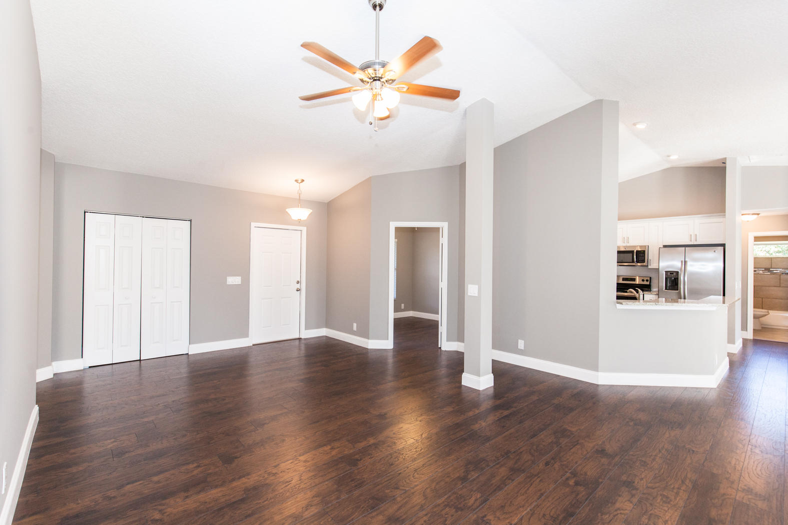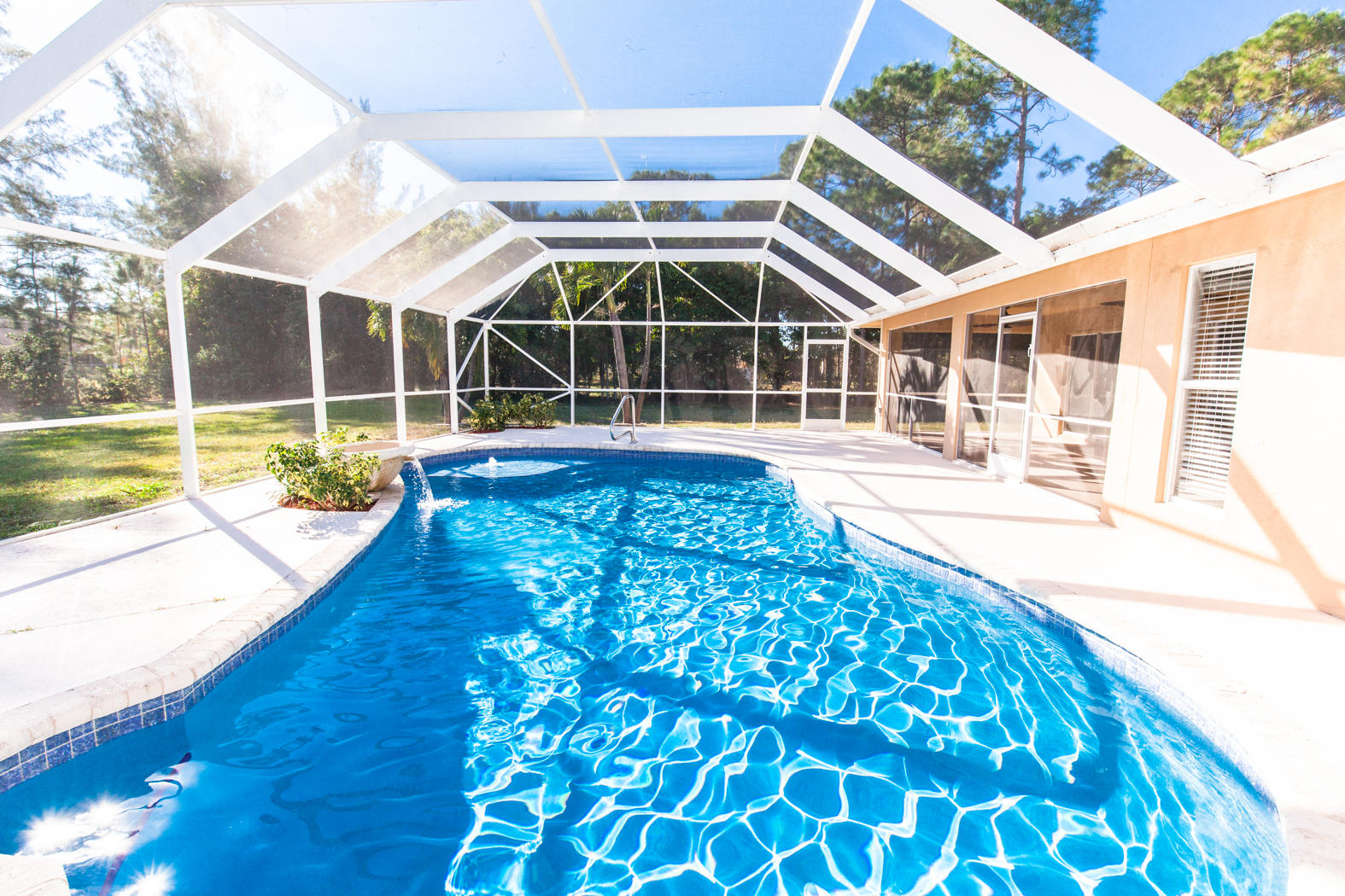 Absolutely charming Acreage pool home with 3 bedrooms plus den/optional 4th bedroom, 2 full baths and a two-car garage. Complete renovation including roof, well equipment, kitchen, baths and flooring. Split bedroom layout with generous room sizes. Master bath features separate corner shower and oversized vanity. Granite tops in kitchen and both baths. Vaulted ceilings in living areas. Oversized screen enclosure and freshly landscaped flowerbeds. Fully fenced lot with storage shed.