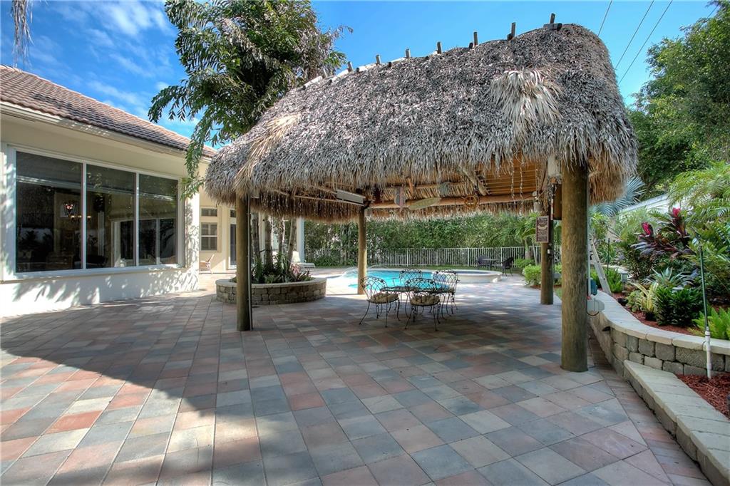 FABULOUS SOUGHT AFTER VERSAILLES MODEL WITH AMAZING OUTDOOR ENTERTAINING AREA*HUGE PAVER POOL DECK WITH TIKI HUT*SPARKLING HEATED POOL AND SPA*4 LARGE BEDROOMS 3 1/2 BATHS*TRIPLE SPLIT PLAN W LIBRARY/OFFICE*GOURMETS WILL LOVE THIS KITCHEN WITH GRANITE COUNTERS AND WOOD CABINETRY*NEUTRAL DECOR*SOME ACCORDION SHUTTERS*CIRCULAR DRIVEWAY*FRESHLY PAINTED EXTERIOR*SUPER PRIVATE LOCATION*DON'T MISS THIS ONE!!