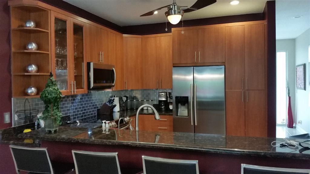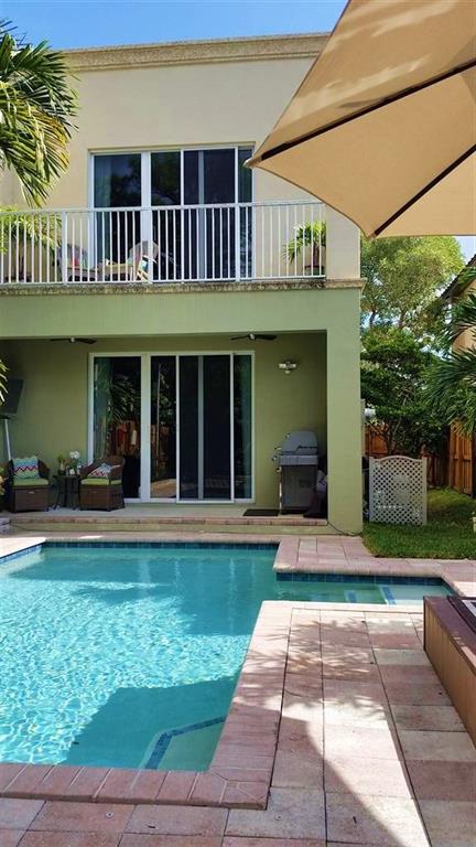 Pristine, Fee-Simple Town home w/ new kitchen equipped w/ Samsung Appliances & LED lighting. Desirable corner unit w/ illuminating southern exposure. Tile Floors downstairs & wood upstairs. Private Swimming Pool set in a beautiful backyard w/ landscape planters, Trex composite decking & covered porch with ceiling fans & a flat screen TV. Spacious master bedroom w/ balcony. Master bathroom w/ jetted soaking tub, separate shower & double sinks. Walk-In Closet plus a shoe closet all custom designed.