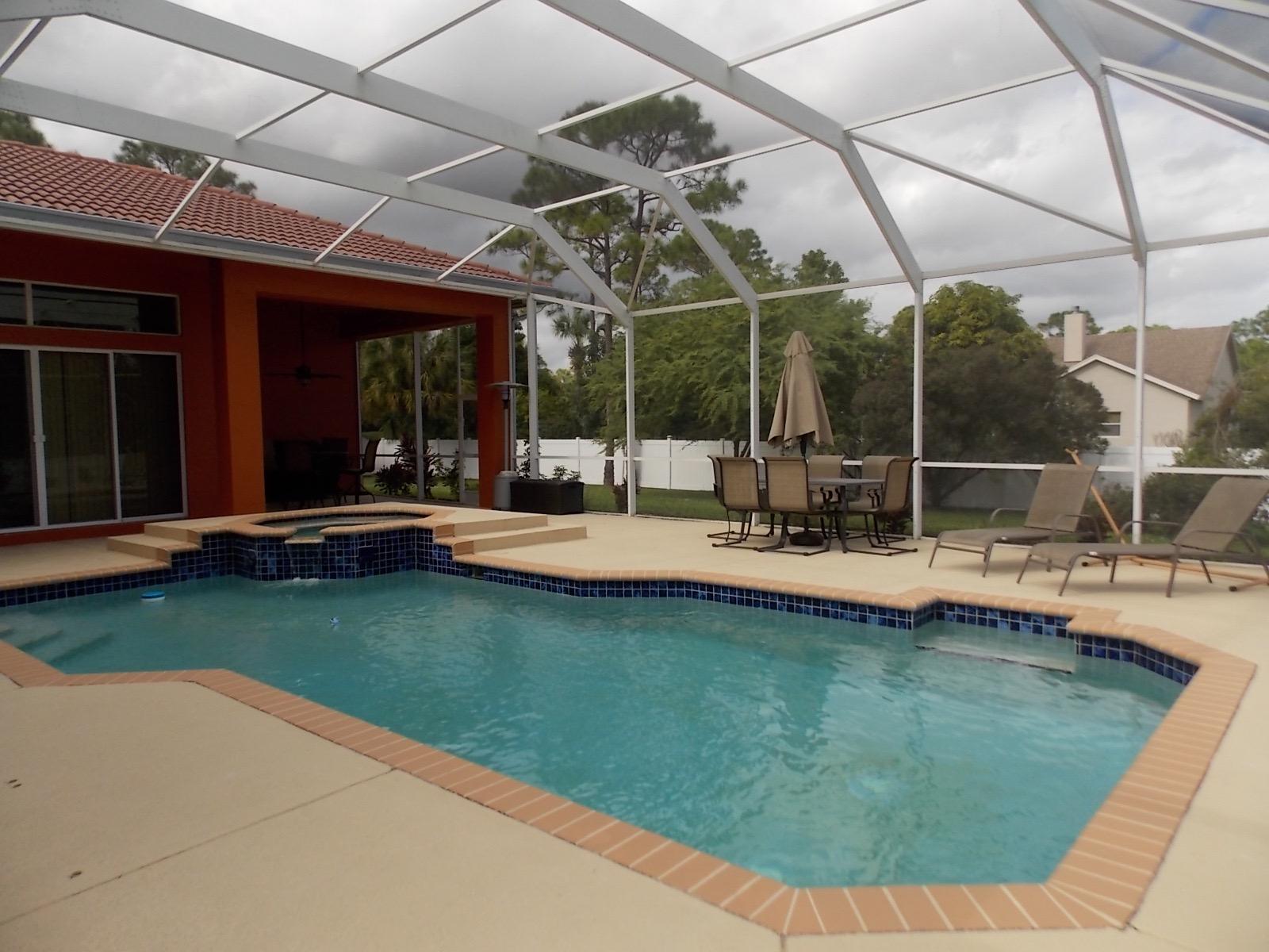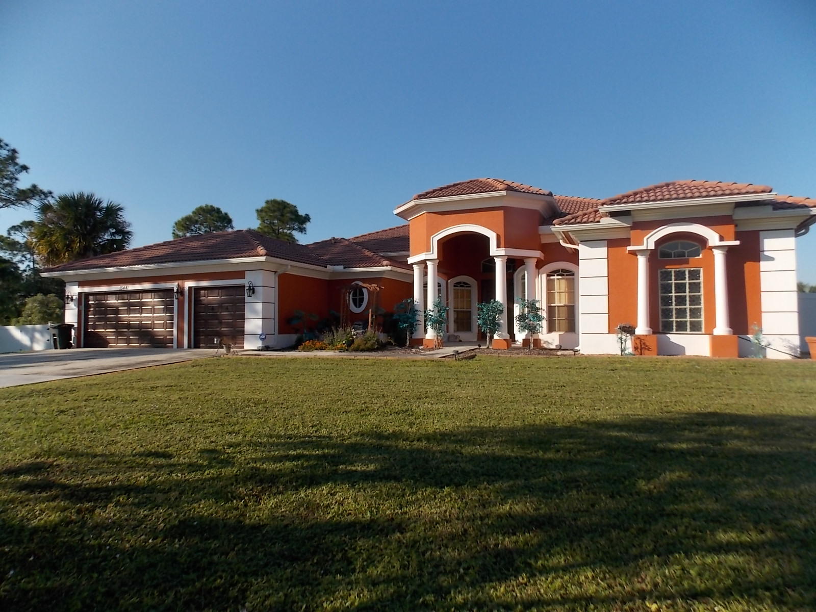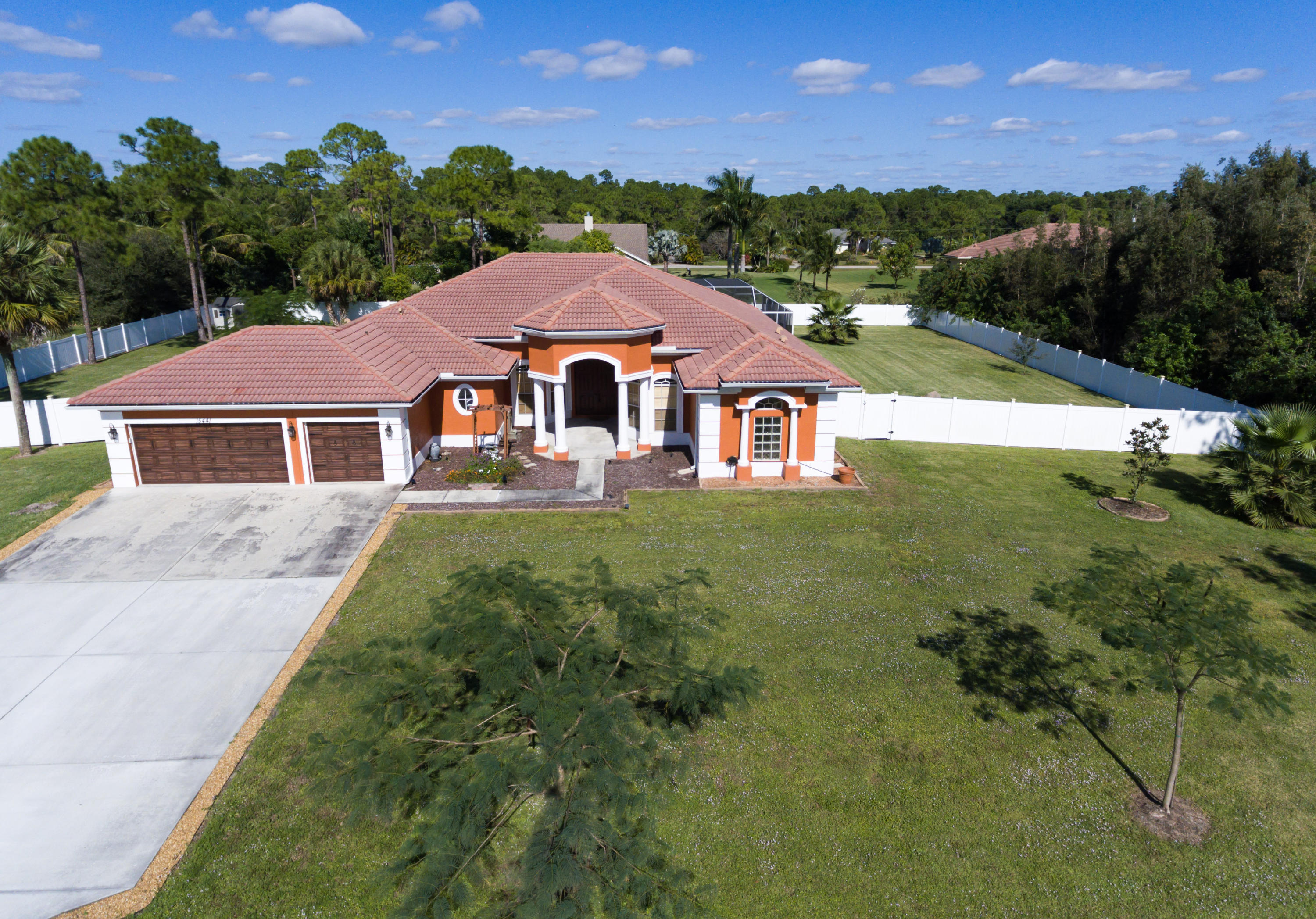 This luxurious sprawling estate in the Acreage has 5 bedrooms plus an office, 4 1/2 baths, 3 car garage and over 3700 square feet of living space. It boasts a spacious open floor plan ideal for entertaining with the living areas opening up to the resort style heated pool and spa with an expansive screened in lanai. The property is fully fenced with double gate for easy boat parking/storage and the driveway is fully paved with extra parking. This gorgeous home offers a large kitchen with custom 42'' maple cabinetry with island, granite countertops, stainless steel appliances including a double wall oven and a breakfast nook. There is also a formal dining room, formal living room and family room. All the bedrooms have their own bathrooms which is a very nice feature. The exterior has been