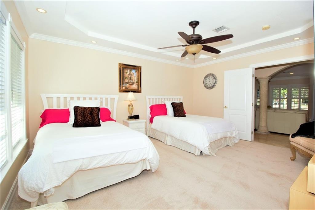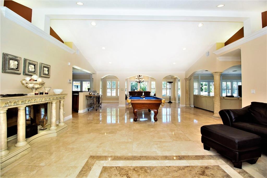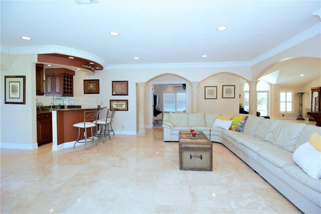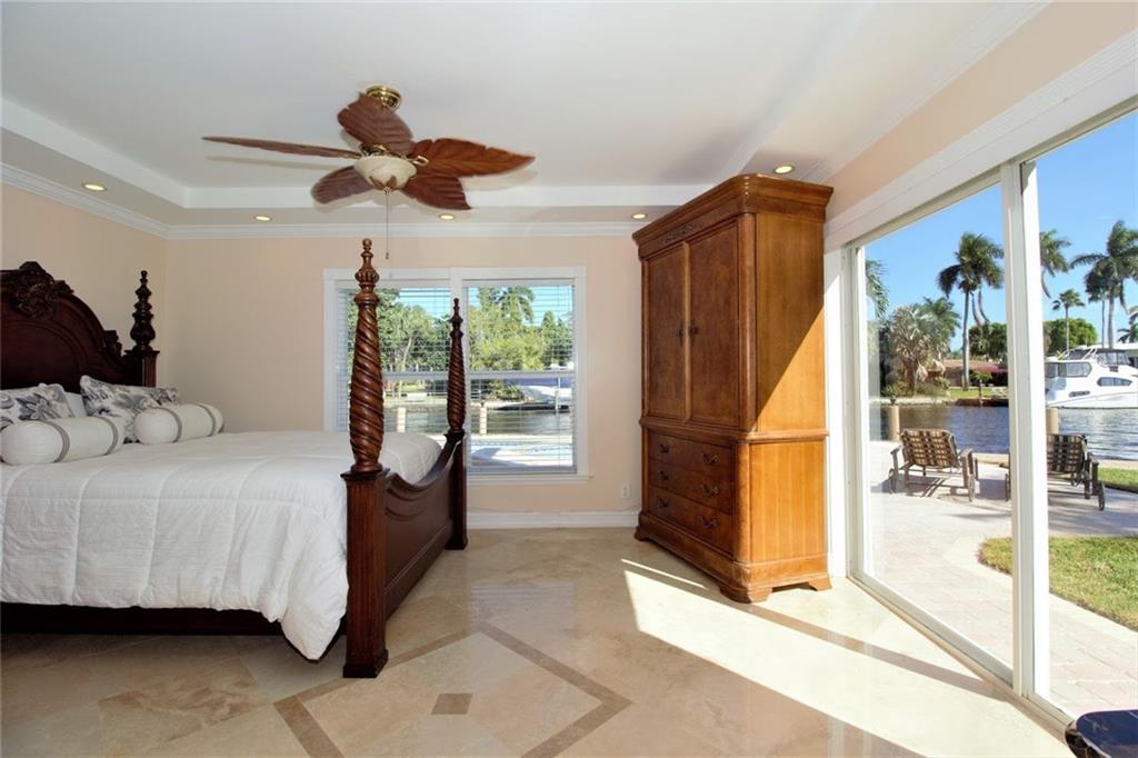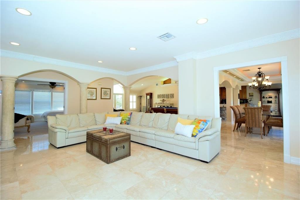 Boater's paradise! Newly renovated, spacious 2 story, 5 bedroom, 5 1/2 bath home on over 1/3 of an acre with 240' of water frontage with lighted dock, directly on Lake Santa Barbara. Unobstructed and panoramic views of the lake and Intracoastal. Large private master suite and open living area with water views. This home has it all with 3 car garage, hurricane impact windows throughout, circular drive, private cul de sac, bar and much more.