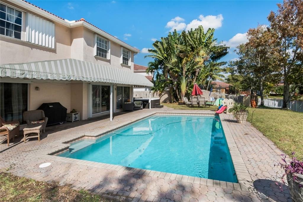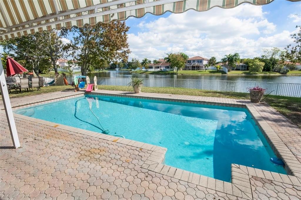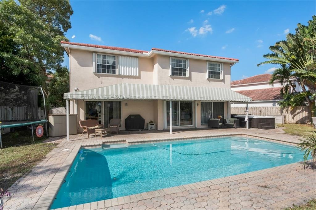 4 br, 2-1/2 ba waterfront pool home. Prime location! Super, wide-lake view! Beautiful & spacious. Oversized, fenced lot. Cul-de-sac. All 3 bathrooms updated. Stainless steel appliances. 2013 A/C. Tile floors downstairs. Updated light fixtures. Huge master bedroom. Gas water heater, stove & dryer. Mosquito mister. Child pool fence. Sand lot. Hot tub. Accordion shutters. North-south exposure. Low HOA. Storage shed. Great neighborhood. Minutes from Sawgrass Mall, Sawgrass Corporate Park & highways.