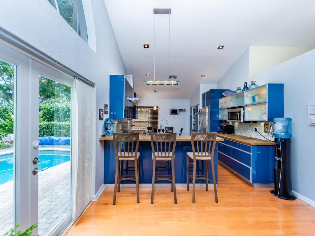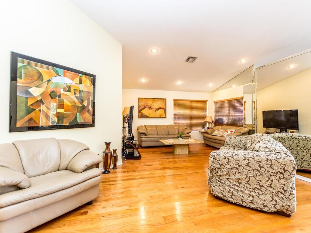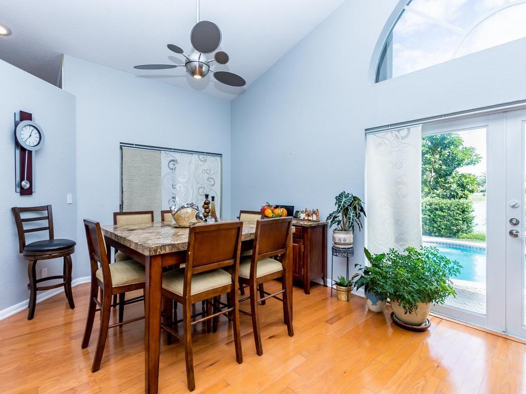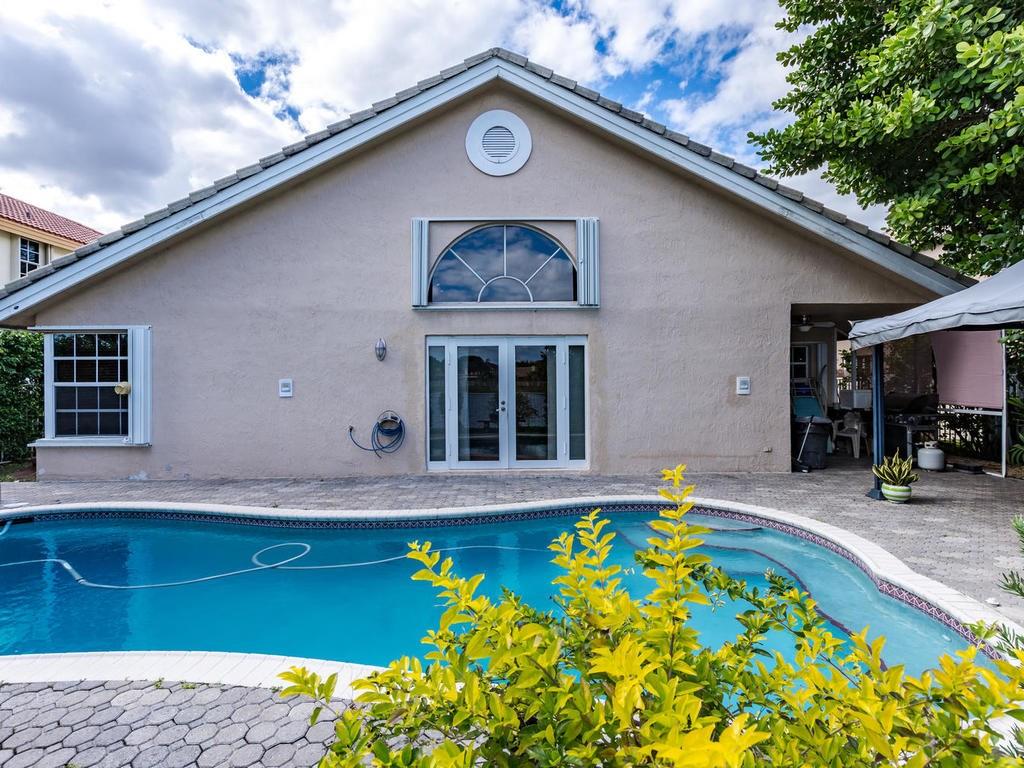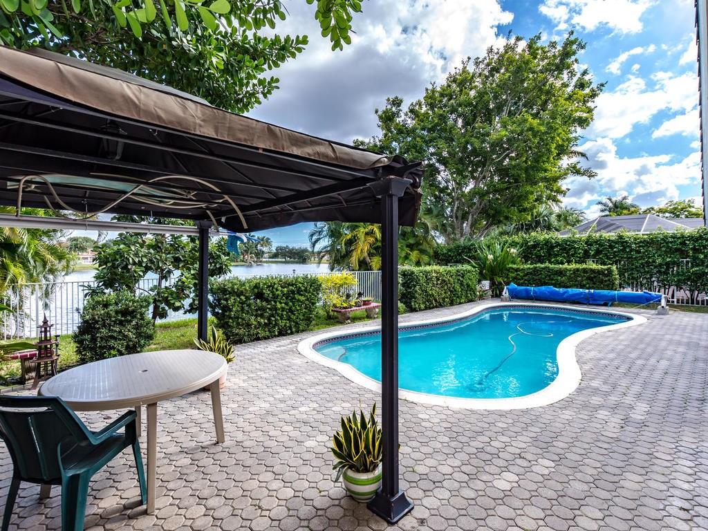 Beautiful 3/2 in Embassy Lakes Ventana ..French doors leading out to the pool and wide view of the lake! Solid oak wood floors throughout...Remodeled kitchen features European/Modern 42" laminate cabinets with pull out shelves and stainless steel appliances ..Updated 2nd bathroom. Master bath features dual sinks and a roman tub with jets.. High hats, custom lighting , Paver patio, fenced yard, accordian shutters, Cooper City "A" schools