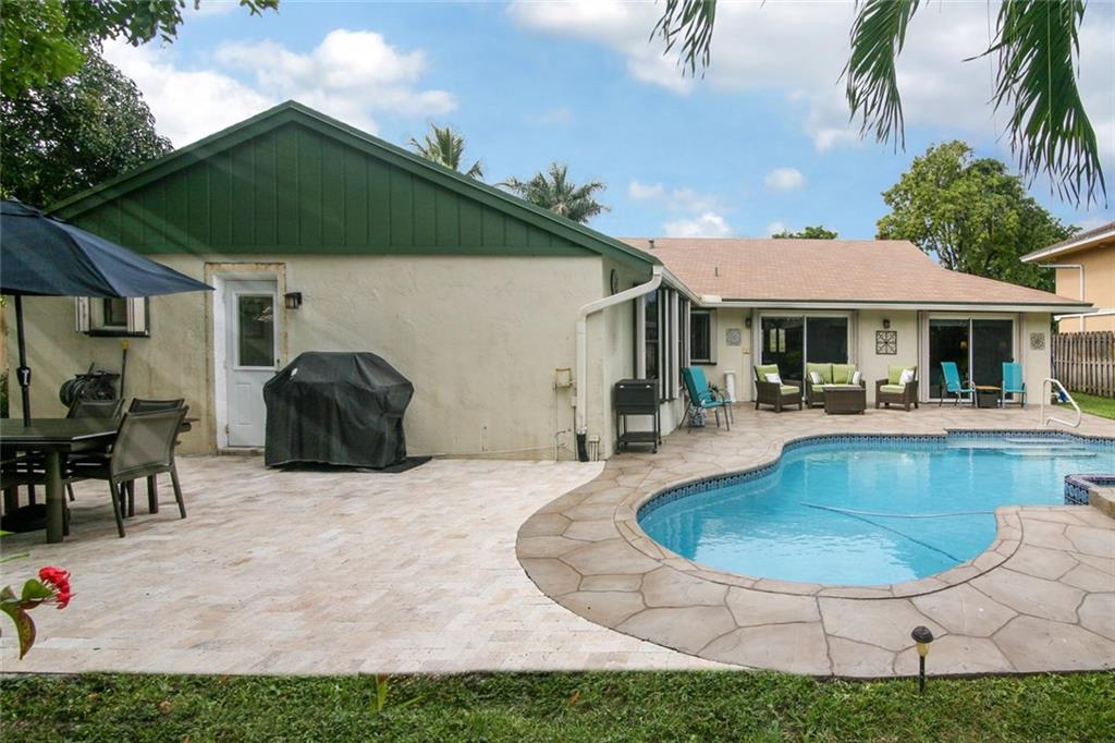 Impeccable 4/3 pool home in Jacaranda Lakes! Rarely available triple split floorplan with separate guest entrance in back of the home! Tons of natural light. Open kitchen, wet bar & living areas great for entertaining. Gorgeous tile flooring & vaulted ceiling with cedar plank finish. Huge backyard featuring oversized heated pool & spa. Refinished patio deck. Accordion shutters & impact garage door. Roof 2012. Home sits on a cul-de-sac street. This is a must see!!