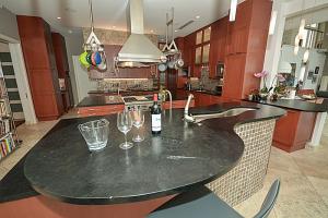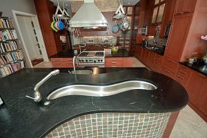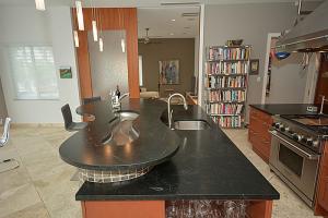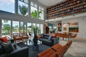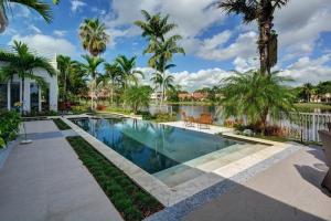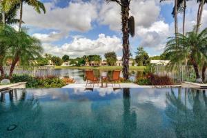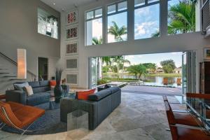Exquisitely detailed Zen Contemporary Home. Lakefront custom home. Sited on 185' beautiful lakefront lot, Cul de Sac, pie shape property. Landscaped redesigned in 2012. Interior painted 2013. 5 bedroom, 5 baths, 25' of impact glass opening, 26'motorized fence.Design concept was to integrate exterior gardens and Infinity Pool for maximum light. Steel beam trellis reflected inside house by exposed beams that support a glass catwalk which features a library. Living core of the house 'Gathering Room', Kitchen and Family room one space. Hand chiseled limestone floors. Two Kitchens, ideal for entertaining or keeping Kosher. Top of the line Kitchen designed with two food preparation areas (click on Documents for more info)